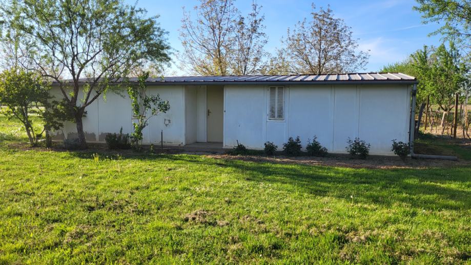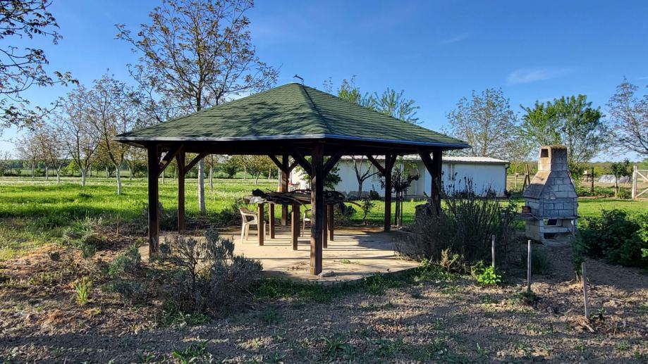 U sklopu se nalazi montažna kuća od 65m2 (4 prostorije, hodnik), gradska voda, roštilj, sjenica od hrastovog drveta sa stolom i klupama, limena garaža i plastenik. Spojen na gradski vodovod, a struja se nalazi odmah pored voćnjaka.