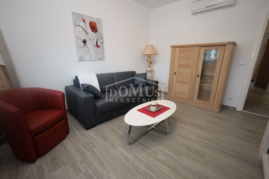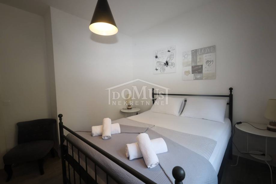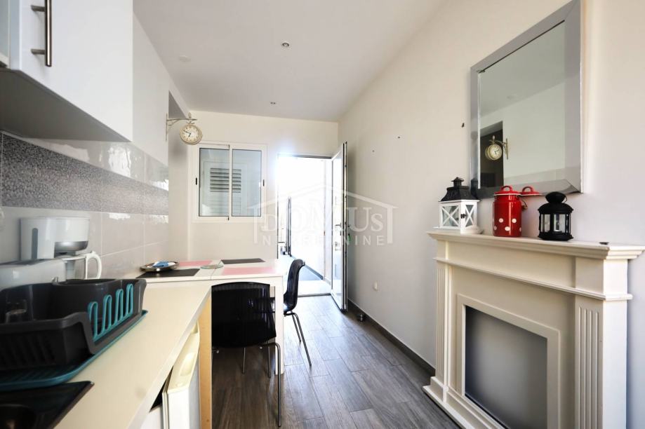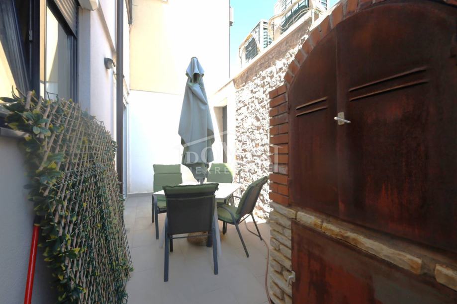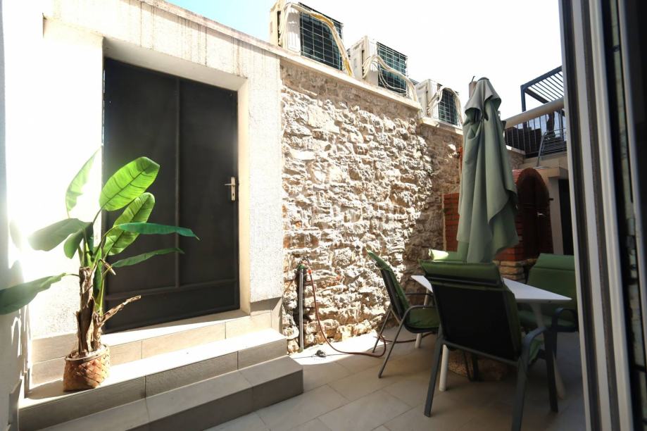 Vodice, odlična lokacija, samo 200 m udaljeno od strogog centra, nalazi se apartman u prizemlju zgrade, oznake S1, ukupne površine 50,60 m2, koji je u potpunosti opremljen namještajem, mini kuhinjom, te ostalom opremom. Apartman se sastoji od: ulazni prostor, kuhinja + blagovaona, dnevni boravak, jedna spavaća soba, kupaona, zatvoreno dvorište površine cca. 14,50 m2. Apartmanu pripada i jedno vanjsko parkirno mjesto. Zgrada je udaljena 550 m od plaže i 200 m od strogog centra.