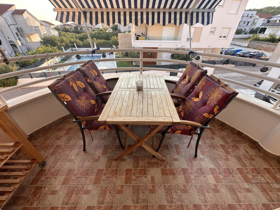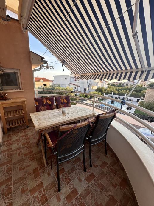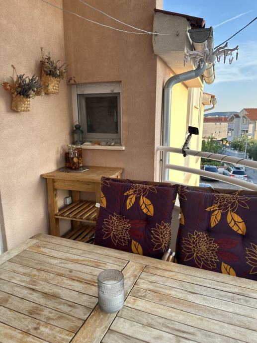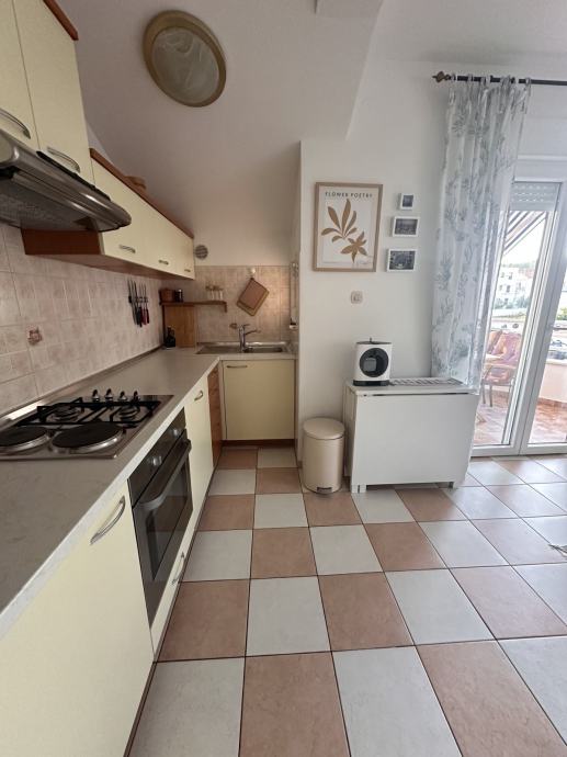 Zbog odlične pozicije u mirnom dijelu Vodica, plaža na 3 min i centra na 10 min hoda, stan je idealan za stalni boravak ili za turizam.