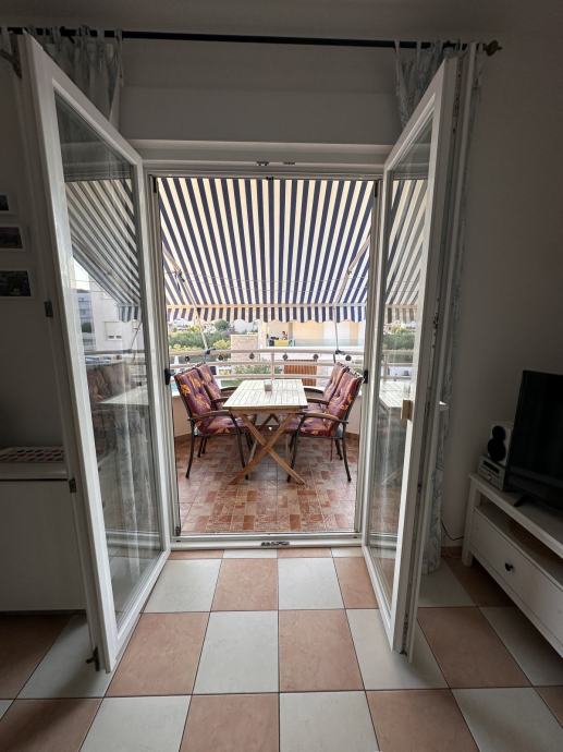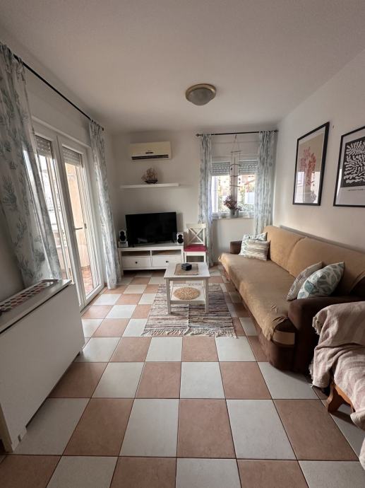 Prodaje se 1,5 sobni stan u Vodicama, prvi kat od dva, na prekrasnoj mirnoj lokaciji 300 m od Plave plaže(3 min hoda) i 5 km duge šetnice uz more.