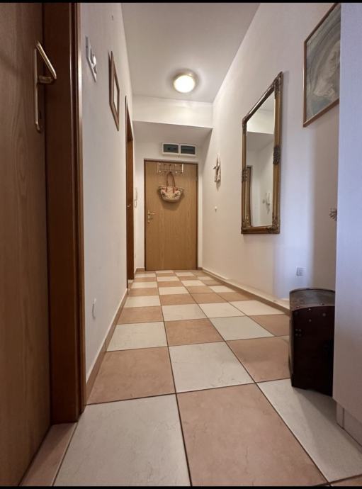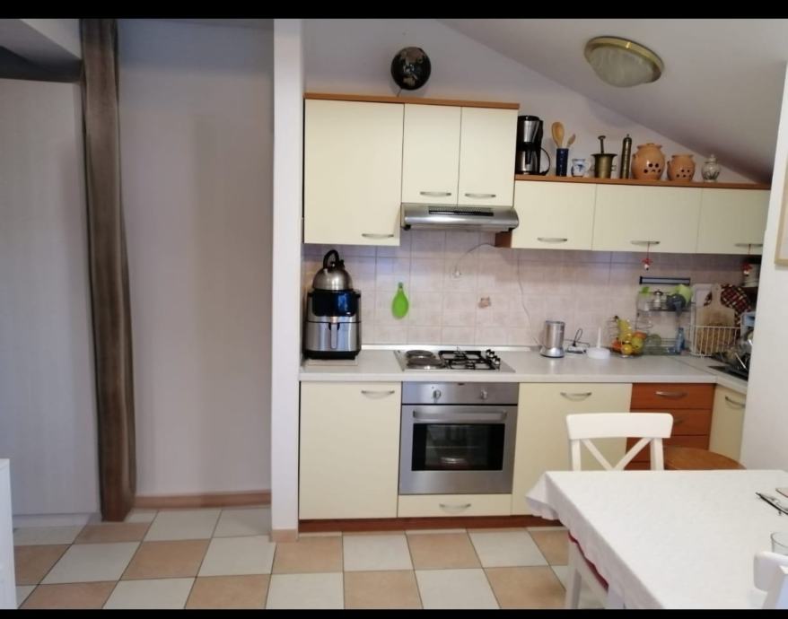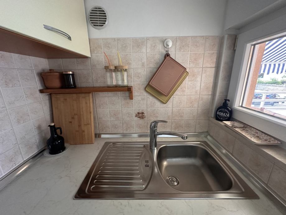 Stan se prodaje s kuhinjom i pripadajućim aparatima i kompletno namještenom kupaonom sa perilicom rublja.Prozori i vrata su od PVCa sa komarnicima i roletama. Grijanje i hlađenje je novom inverter klimom koja je dio stana.