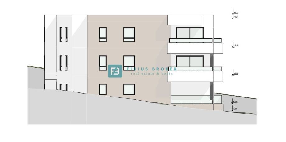 Višestambena zgrada u novogradnji sa ukupno 10 stanova, nalazi se na izvrsnoj lokaciji te ima panoramski pogled na more i grad. Zgrada ima ukupno četiri etaže: suteren + prizemlje + 1. kat + 2. kat. Zgrada modernog izgleda se gradi kvalitetnim materijalima prema posljednjim standardima gradnje i biti će opremljena: stiropor fasada, ALU stolarija s troslojnim staklom, ALU balkonska klizna vrata, električni podizači roleta, podovi obloženi prirodnim kamenom Plano, moderne kupaonske sanitarije, klima uređaj u spavaćim sobama i dnevnom boravku, TV priključak u spavaćim sobama i dnevnom boravku, podno grijanje preko toplotne pumpe, staklena ograda na terasama. Zgrada ima lift i spremište. Svaka stambena jedinica posjeduje parkirno mjesto unutar dvorišta zgrade te jedno spremište u suterenu zgrade (podrum). Stanovima u prizemlju S1 i S2 pripada dio vrta. Terase svih stambenih jedinica imat će pogled na more. Postoji mogućnost kupnje dodatnog parkirnog mjesta po cijeni od 7.500 €. Predviđeni termin useljenja - ljeto 2026. godine