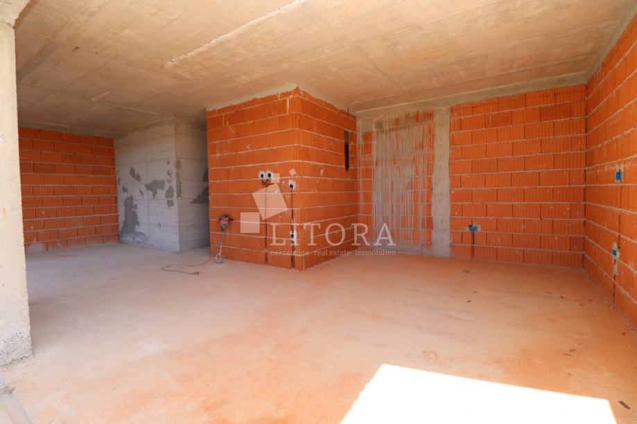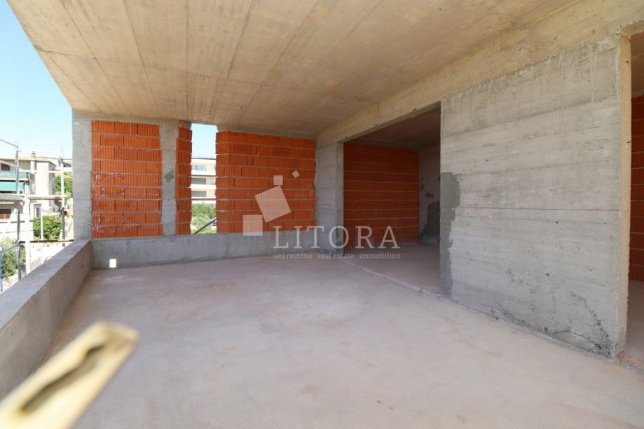 Vodice, penthouse novogradnja – 3-sobni apartman sa pogledom na more. Stambena jedinica S4 nalazi se na 2. katu zgrade, orijentirana je na južnu stranu, ima 130m² korisne površine. Sastoji se od predsoblja, praonice, dvije kupaonice, tri spavaće sobe ( od kojih jedna sa vlastitom kupaonicom i terasom površine17,17 m2) te open space kuhinje s blagovaonicom i dnevnim boravkom, s izlazom na prostranu natkrivenu terasu od 38,44m² sa pogledom na more. Zgrada ima ukupno tri etaže: prizemlje + 1. kat + 2. kat. Modernog je izgleda i bit će opremljena visokokvalitetnim podnim oblogama, unutarnjom i vanjskom stolarijom, klima uređajima za grijanje i hlađenje u svakoj prostoriji, električnim podizačima roleta te dizalom, podno grijanje u cijelom stanu na vodu, solarne panele i spremnik za toplu vodu od 250 l. Apartmanu pripadaju 2 parkirna mjesta. Zgrada se nalazi 600 m od Plave plaže, a 750 m od centra i svih važnijih sadržaja. Predviđeni termin useljenja je ljeto 2026 godine.
