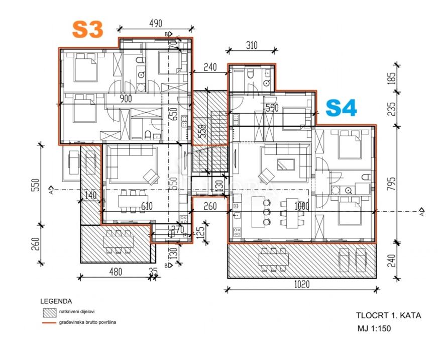 Apartman se prostire na dvije etaže – prvi kat i drugi kat/krovnu terasu – te je trenutno u fazi izgradnje, s planiranim završetkom radova do ljeta 2026. godine.