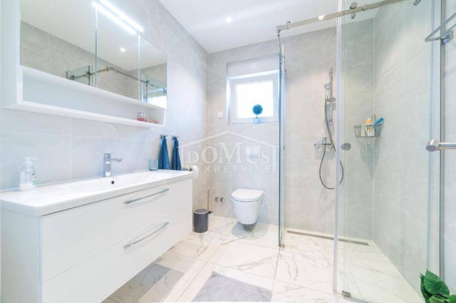 Vodice, na odličnoj lokaciji blizu centra, smješten je 4-soban apartman s velikom terasom i lijepim pogledom na more. Apartman se nalazi na 2. katu višestambene zgrade, ima sveukupnu korisnu površinu od 136,52 m2, sastoji se od hodnika, predsoblja, četiri spavaće sobe, dvije kupaonice, prostrane kuhinje sa blagovaonicom i dnevnim boravkom u cjelini koja ima izlaz na terasu. Apartman je klimatiziran, moderno namješten, namještaj je uključen u cijenu nekretnine. Pripada mu jedno parkirno mjesto. Apartman se nalazi samo 500 m od plaže, a od centra Vodica je udaljen 700 m.