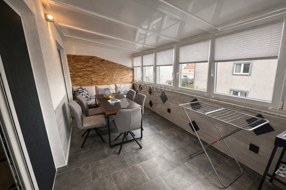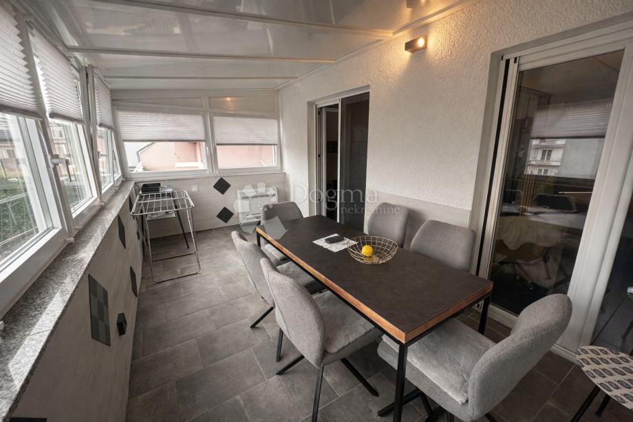 Stan ima netto stambenu površinu od 55,34 m² i sastoji se od hodnika, open space kuhinje s blagovaonicom i dnevnim boravkom, dvije spavaće sobe te kupaonice. Posebnu vrijednost daje zatvorena terasa površine 16,97 m² koja je klimatizirana i funkcionira kao dodatni dnevni boravak tijekom cijele godine.