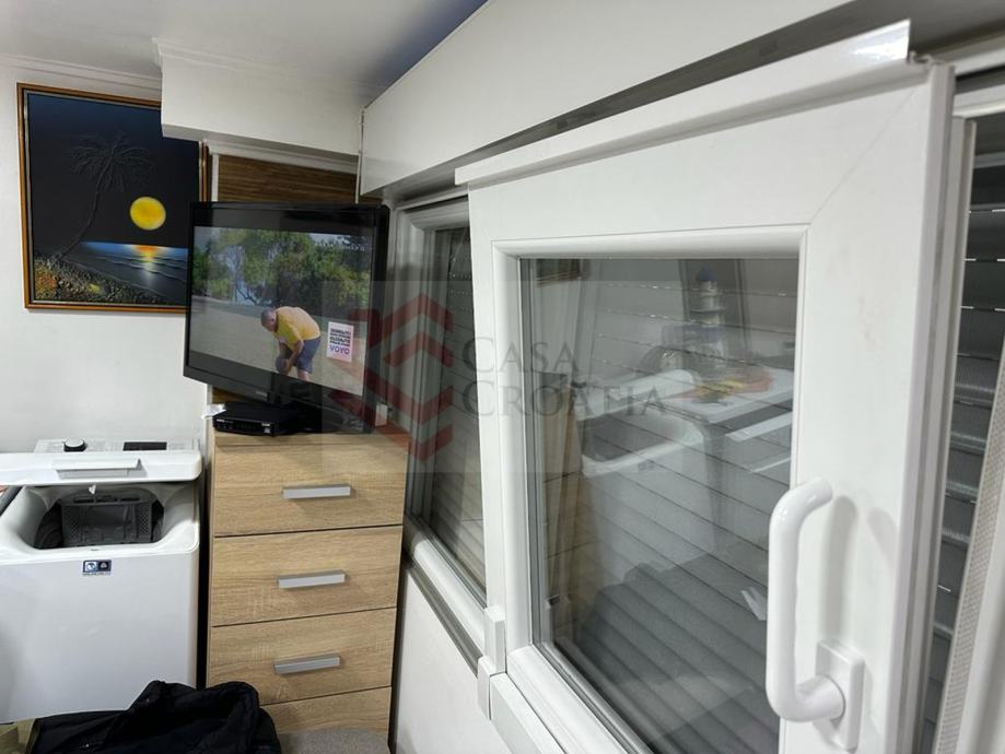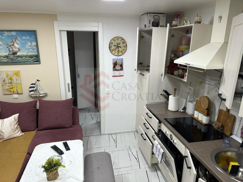 Prodaje se namješten uređen studio apartman od 21 m2 u Vodicama, u neposrednoj blizini plaže i svih potrebnih sadržaja, uključujući i autobusnu stanicu.Sastoji se od dnevnog boravka s modernom, opremljenom kuhinjom, prostrane kupaonice s tuš kabinom i dodatne prostorije koja se trenutno koristi kao manja spavaća soba s pomoćnim ležajem. S obzirom na lokaciju, apartman nema vlastiti parking, ali je zato gradski parking udaljen samo 30 metara od apartmana.Može se koristiti i kao poslovni prostor.Etažirano, uredni papiri.