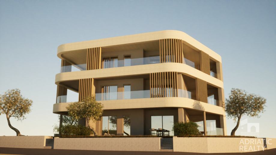 Apartman je južno orijentiran, izuzetno svijetao i funkcionalan. Sastoji se od ulaznog prostora, dnevnog dijela s kuhinjom, blagovaonicom i dnevnim boravkom koji se nastavlja na natkrivenu terasu – idealnu za uživanje u ljetnim večerima. Tu su i dvije spavaće sobe, kupaonica, te zaseban toalet s praonicom. Apartmanu pripada i jedno parkirno mjesto.