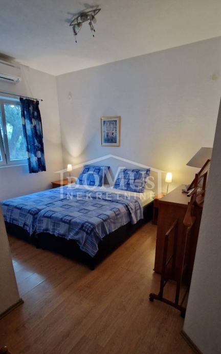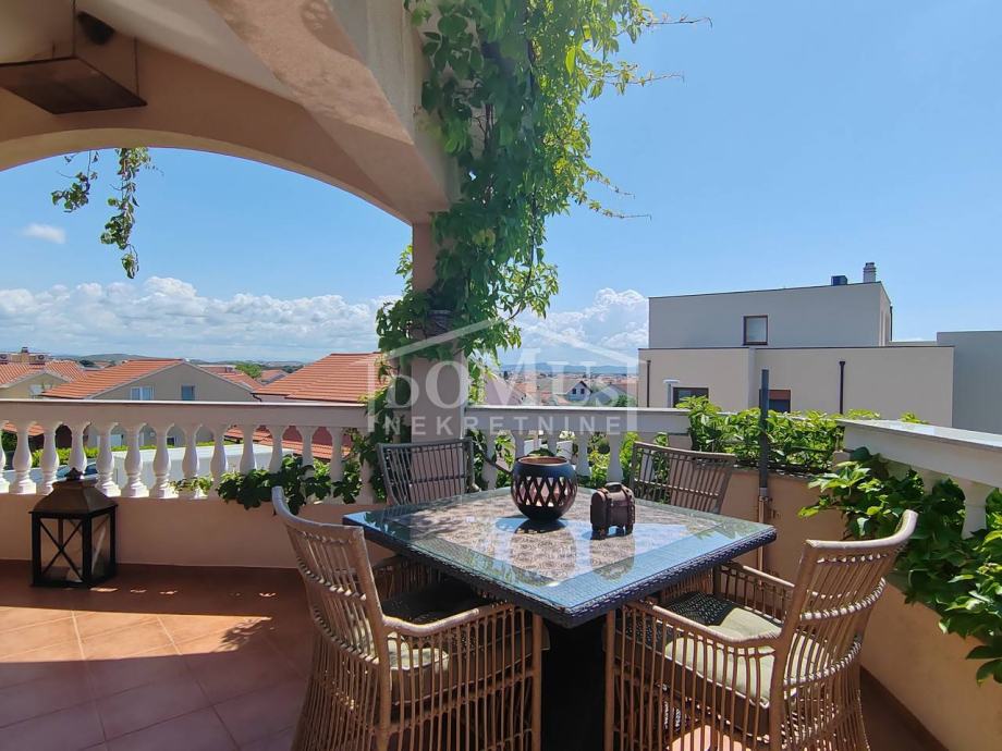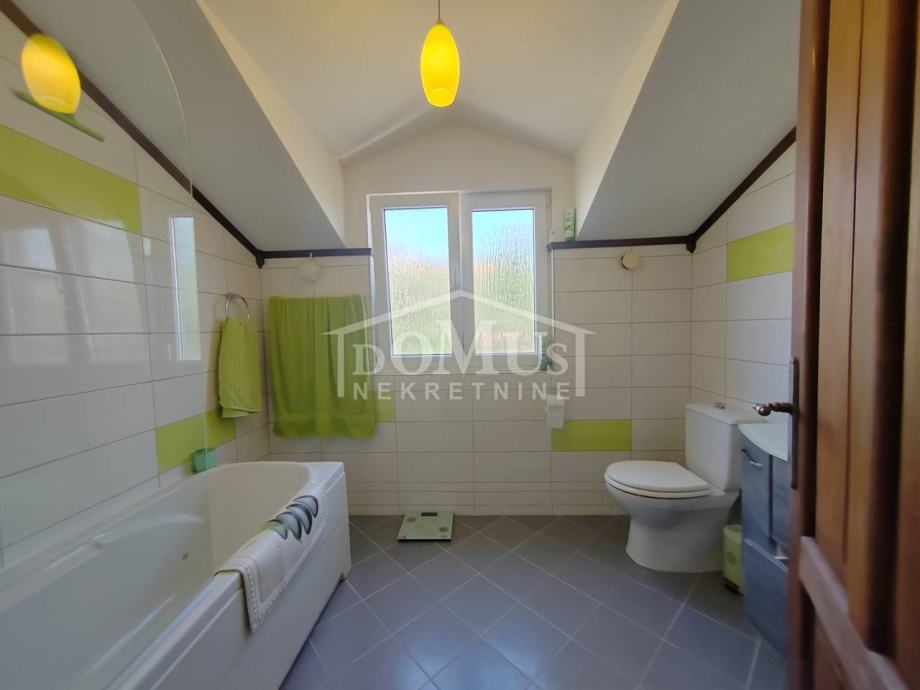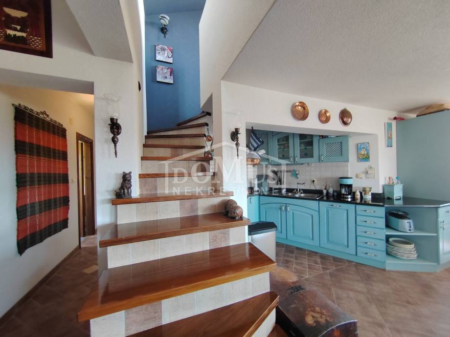 Vodice, na mirnoj lokaciji, nalazi se samostojeća kuća sa garažom ukupne korisne površine od 293,69 m2. Kući također pripada natkriveni roštilj od 27,64 m2, jedno spremište od 12,26 m2, drugo spremište od 1,93 m2, te prostrani vrt na kojem je moguća izgradnja bazena. Prizemlje kuće se sastoji od velikog trosobnog stana te jednog manjeg studio apartmana. Svaki stan u prizemlju je opremljen sa klima uređajem i podnim grijanjem u kupaonicama. Vanjske stepenice vode na 1.kat gdje se nalazi jedan manji studio apartman, te jedan dvosoban stan koji je povezan sa galerijom na 2.katu. Kuća je kategorizirana za turističke usluge, te za ovu godinu već postoje rezervacije sve do kraja godine, a kupac ima mogućnost preuzimanja prihoda. Kuća je opremljena visoko standardnom opremom i namještajem od kojeg je većina uključena u kupoprodajnu cijenu. Kuća je udaljena 1.500m od plaže, a od centra grada 1.100m.