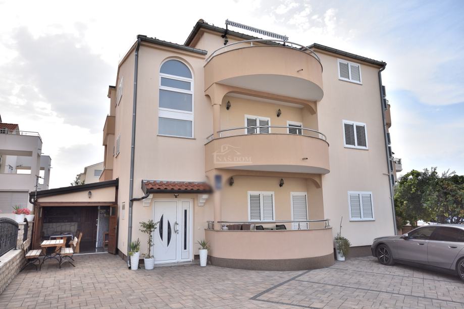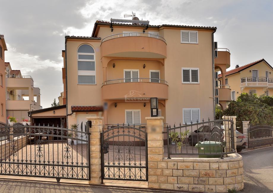 Vodice - prodaje se apartmanska kuća s ukupno 6 apartmana. Samostojeća kuća površine 483m2 ima ukupno tri etaže: prizemlje +kat+II kat. Na svakoj etaži kuće se nalaze dva jednosobna apartmana i zasebna spavaća soba s kupaonicom i terasom. Apartmani se sastoje od ulaza, kupaonice, sobe, kuhinje s blagovaonicom i dnevnim boravkom i terasa. Kuća je sagrađena 2014. godine na zemljištu ukupne veličine 428m2, klimatizirana je i kompletno namještena, ugrađena je PVC stolarija s griljama i komarnicima, inverter klima uređaji grijanje / hlađenje su postavljeni u svim sobama, instalacije za centralno grijanje u prizemlju kuće te instalacije za solarno grijanje. Ima tri brojila za struju i tri brojila za vodu. Postoji mogućnost kupovine svake etaže kuće zasebno.