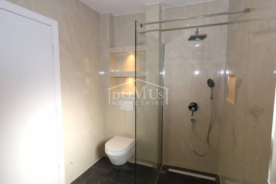 Opremljen je vrhunskim materijalima: moderna keramika i sanitarije, podno grijanje u kupaonicama, dnevnom boravku i kuhinji, električni podizači roleta te klima uređaji u dnevnom boravku i svim sobama. Apartmanu pripada dva parkirna mjesta. Nalazi se 600 m od plaže i 800 m od centra Vodica.