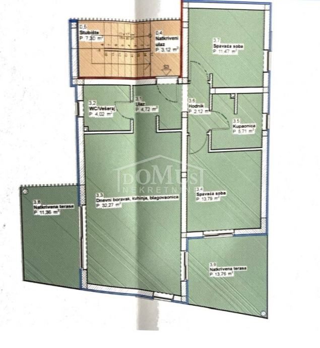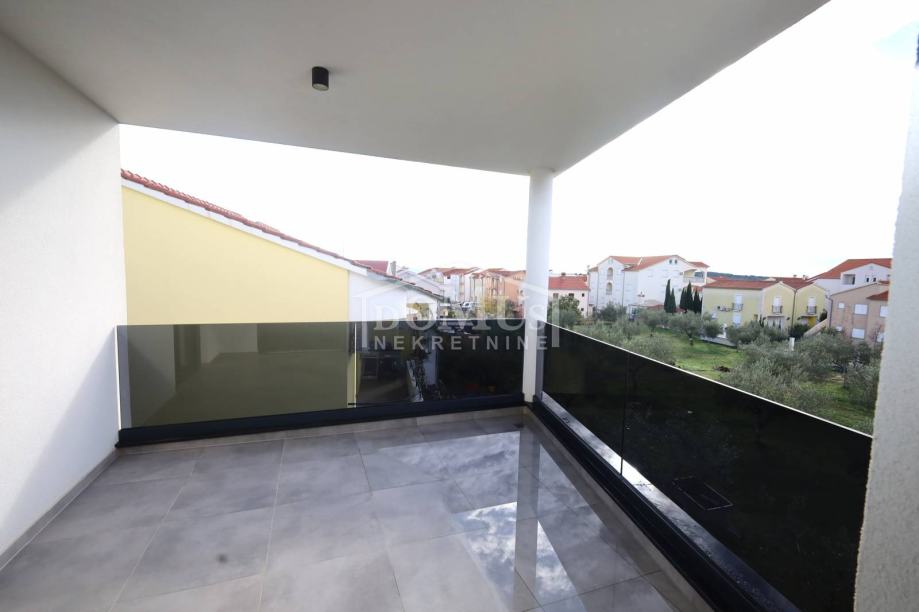 Vodice, novogradnja, atraktivna lokacija, komforan dvosobni apartman na 2.katu. Apartman S3 se nalazi u manjoj stambenoj zgradi sa ukupno 3 apartmana, modernog je dizajna i funkcionalnog rasporeda sa ukupno 92,17 m2 korisne površine. Apartman se sastoji od prostrane kuhinje s blagovaonicom i dnevnim boravkom u jednom prostoru, vešeraja, dvije spavaće sobe, od kojih jedna ima svoju kupaonicu, hodnika te dvije natkrivene terase od 11,36 m2 i 13,76 m2. Opremljen je vrhunskim materijalima: moderna keramika i sanitarije, podno grijanje u kupaonicama, dnevnom boravku i kuhinji, električni podizači roleta te klima uređaji u dnevnom boravku i svim sobama. Apartmanu pripada dva parkirna mjesta. Nalazi se 600 m od plaže i 800 m od centra Vodica.