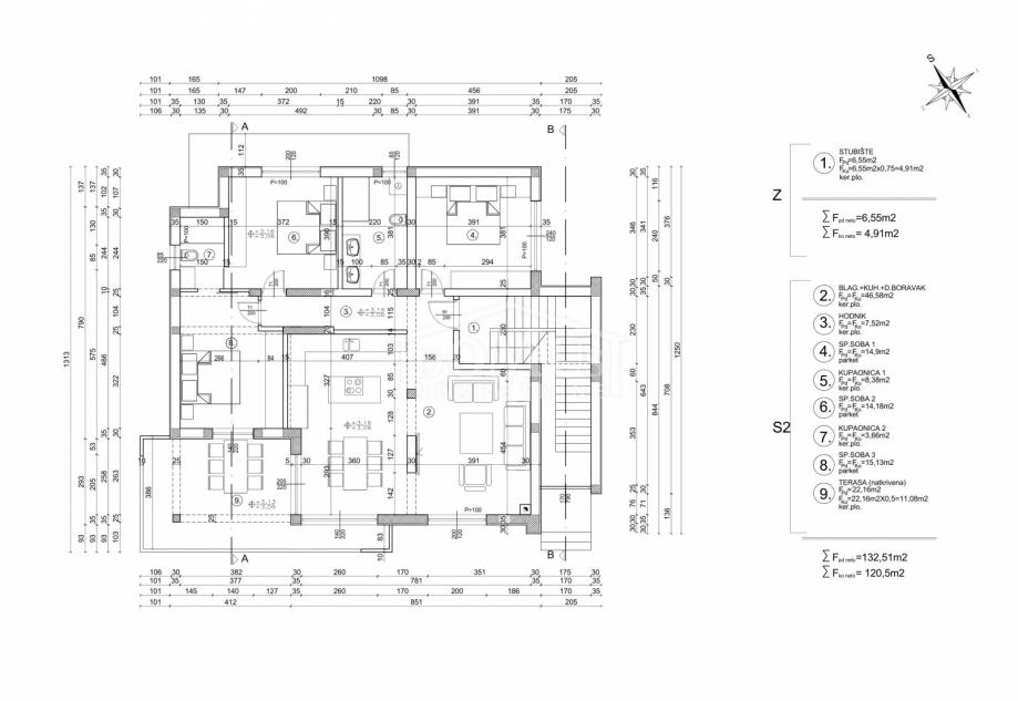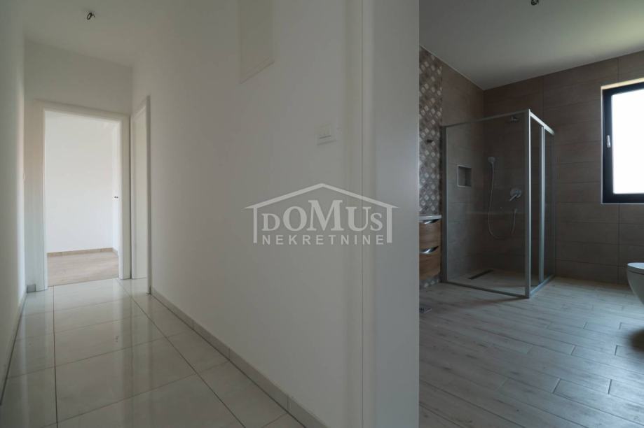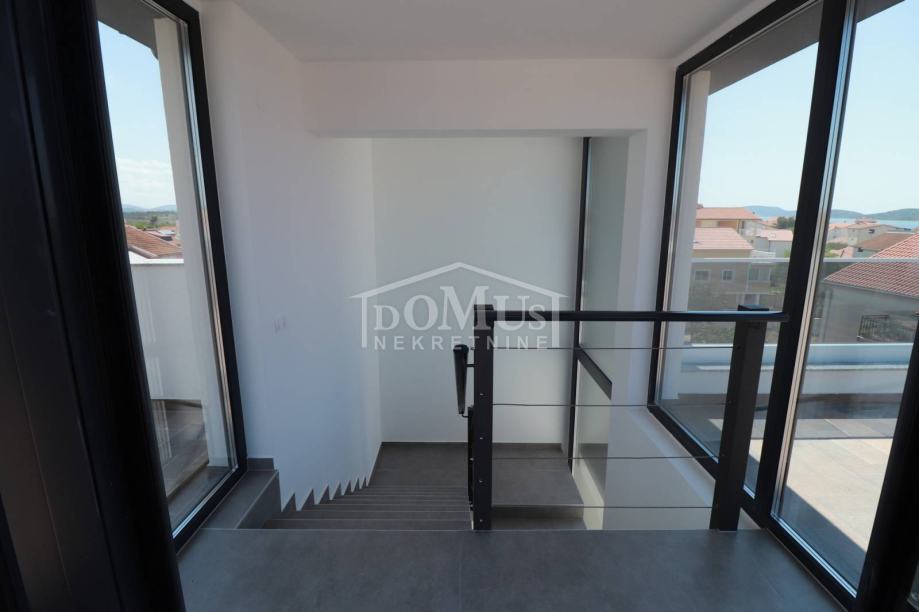 Stan na 2.katu ima 168,79m2 korisne površine, sastoji se od predsoblja / hodnika, prostrane kuhinje s blagovaonicom i dnevnim boravkom s izlazom na veliku natkrivenu terasu koja ima površinu od 21,64m2, tri spavaće sobe, dvije kupaonice, stanu pripada i cijela krovna terasa koja ima površinu od 126m2 na kojoj je postavljen jakuzzi, s terase se pruža prekrasan pogled na more i grad Vodice, stanu pripadaju i dva parkirna mjesta.