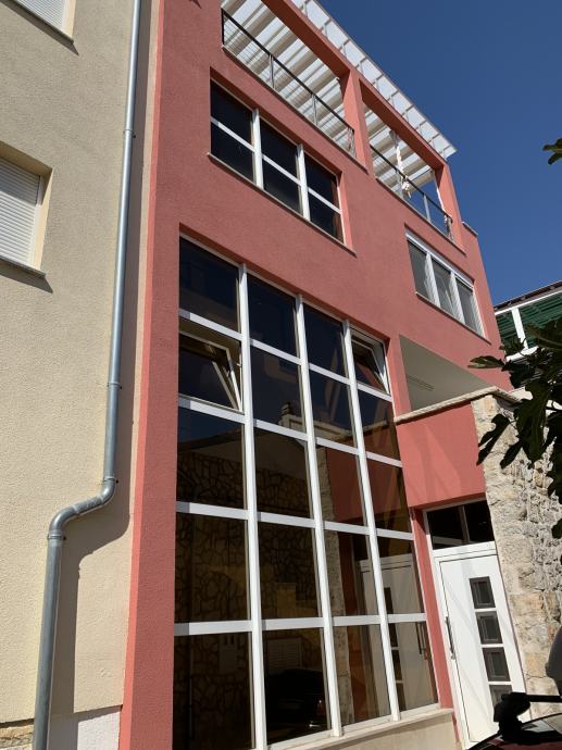 U centru Vodica, na odličnoj lokaciji (blizu Sante Marije), prodajemo gotovo novu zgradu sa tri apartmana i dvije garaže, korišteno svega nekoliko sezona, nikad iznajmljivano. Dva su dvoetažna (dvosoban 41,40m2 i trosoban 56,97m2) i jedan jednoetažan (trosoban 48,94m2) apartman. Zgrada ukupno 333m2 .Vrlo kvalitetna gradnja, srušena stara zgrada i od temelja sve potpuno novo izgrađeno, termofasada, alu i plastična stolarija. Prostrane garaže za dva velika auta, svaki apartman ima spremište, zasebna brojila struje i vode. Idealno za iznajmljivanje ili višečlane obitelji. Pogled s gornjih apartmana na cijele Vodice. Plaža i svi sadržaji u blizini, na minutu hoda. Prodaje se namješteno, odmah useljivo i spremno za korištenje. Prodajemo radi nedostatka vremena za korištenje. Vlasništvo čisto, 1/1, nema tereta, odmah moguć prijenos.
