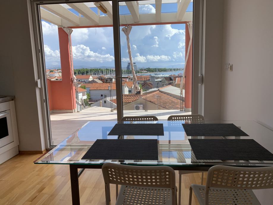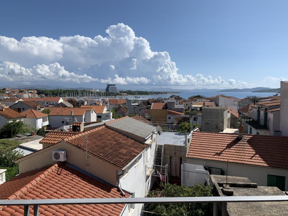 Vodice, centar, pogled na more! Nova zgrada s 3 apartmana i 2 garaže (prodaja)