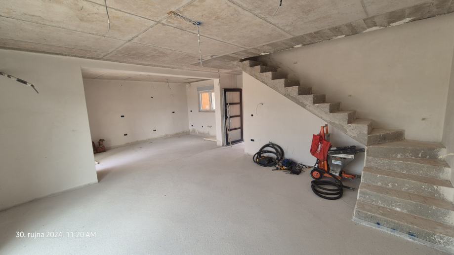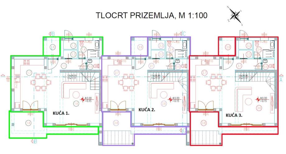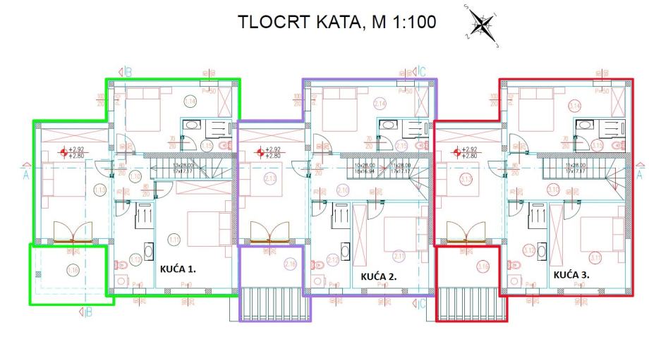 Vodice, 1.200 metara od mora, gradimo novi projekat od tri kuće u nizu. Kuća oznake S3 orijentacije sjeveroistok, jugozapad. Kuća nudi dvorište, parkirna mjesta, bazen, prizemlje za dnevno življenje, kat gdje nam je spavaći dio te Krovna terasa sistem open space na koju se dolazi povezanim stubištem od prizemlja. Izvrsna gradnja, odlični materijali i oprema.