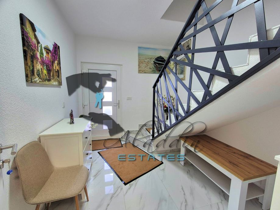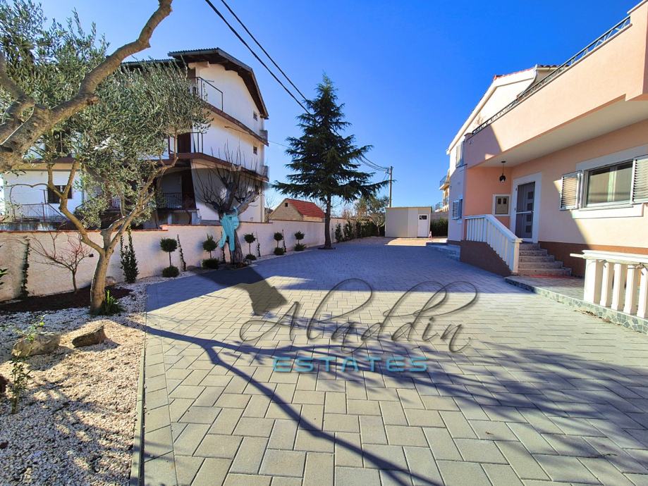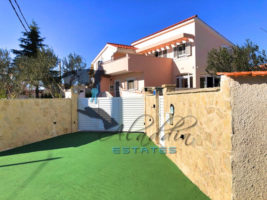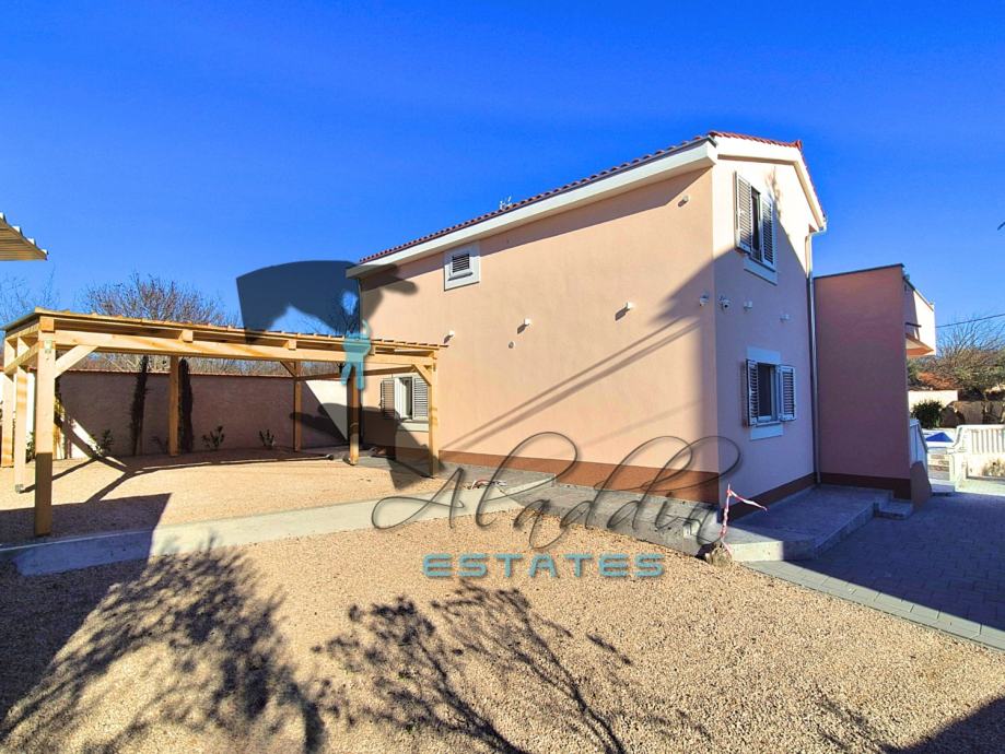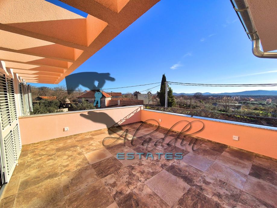 Beautiful family house in Čista Mala in the hinterland of Vodice, newly built and practically finished. It rises over two floors with 244 square meters of living space, of solid and high-quality construction, generously equipped and beautifully furnished. It was designed as a building with two residential units with an internal staircase connecting both floors, or two apartments in nature. The apartments are not completely separated, but this is very easy to finalize if desired.