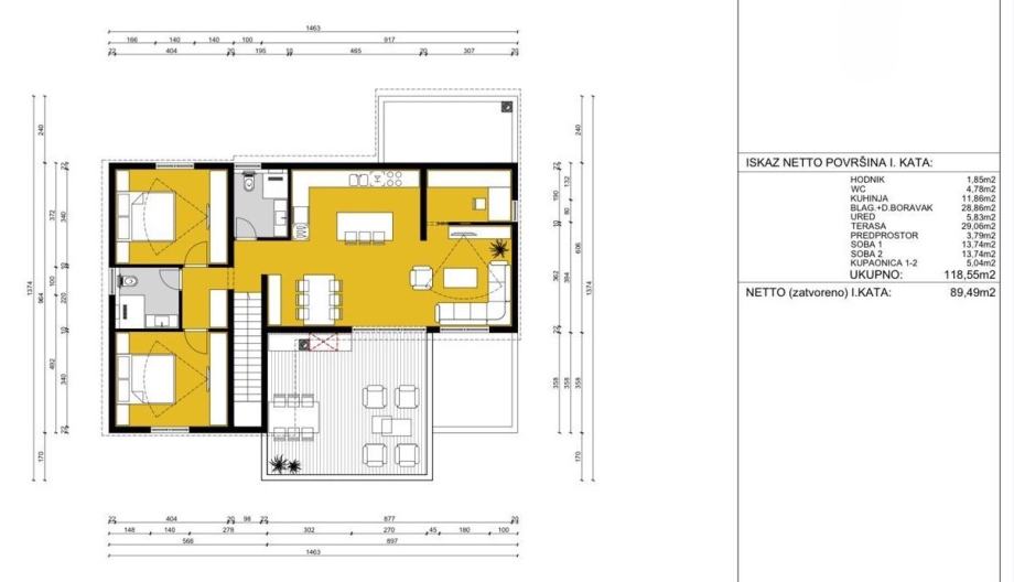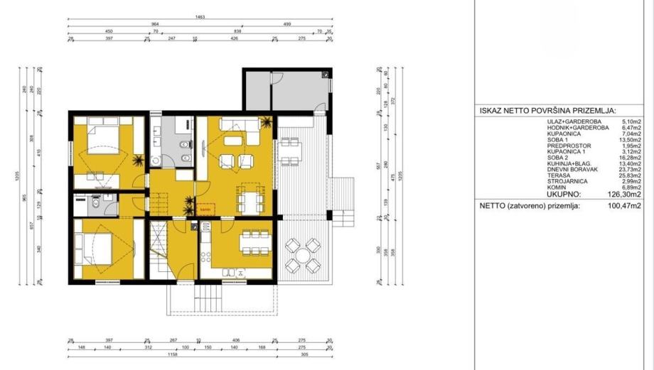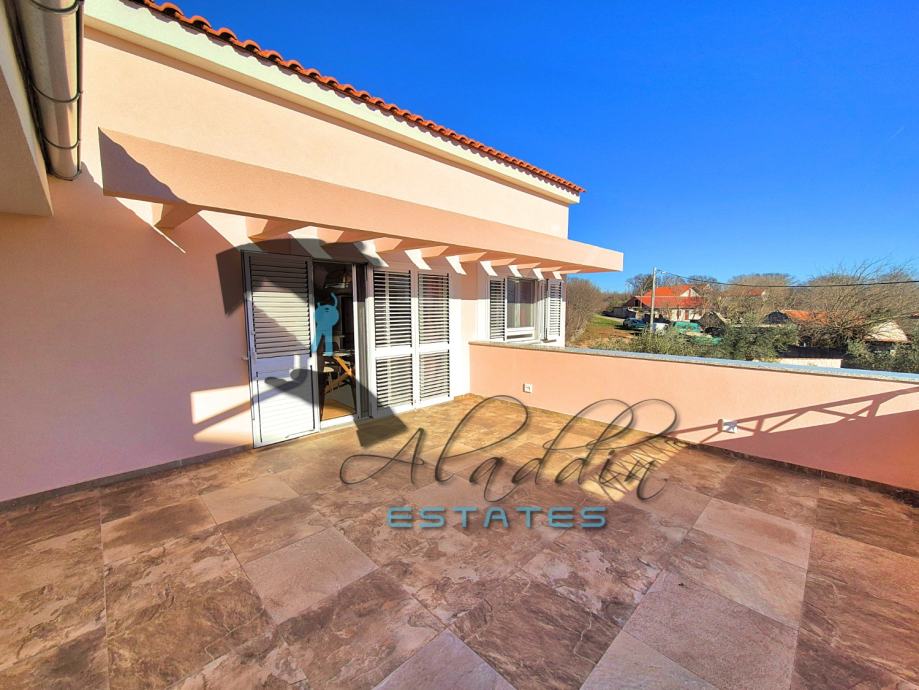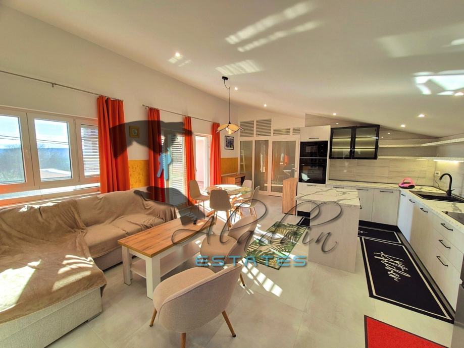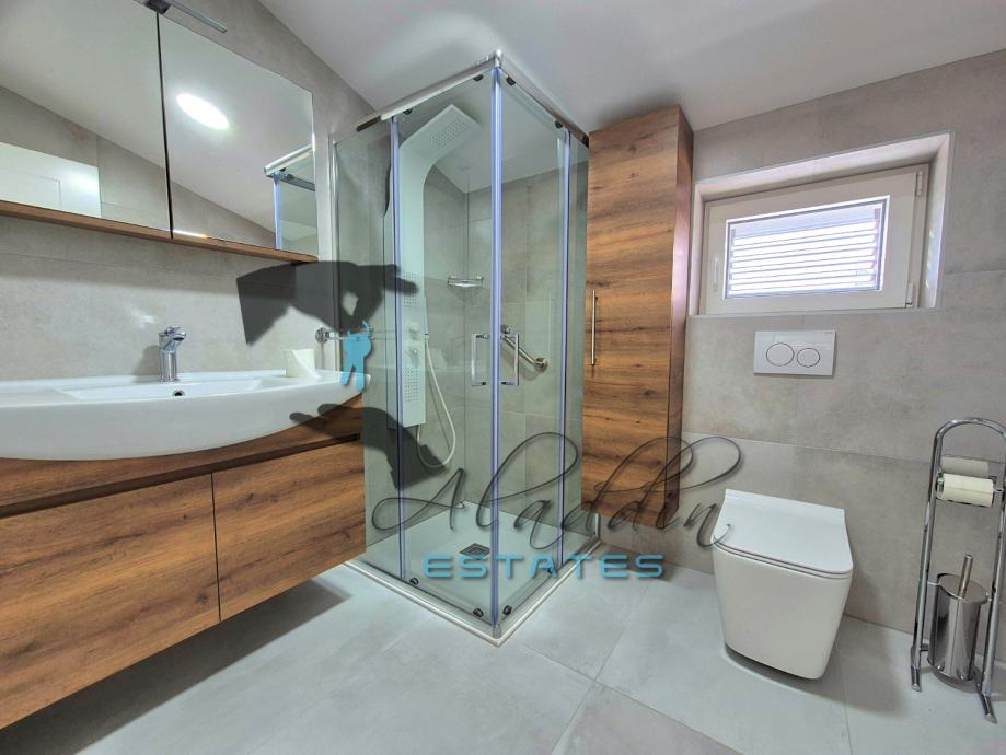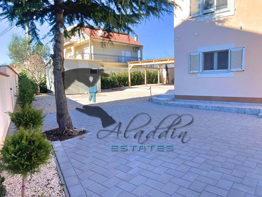 Beautiful family house in Čista Mala in the hinterland of Vodice, newly built and practically finished. It rises over two floors with 244 square meters of living space, of solid and high-quality construction, generously equipped and beautifully furnished. It was designed as a building with two residential units with an internal staircase connecting both floors, or two apartments in nature. The apartments are not completely separated, but this is very easy to finalize if desired.
