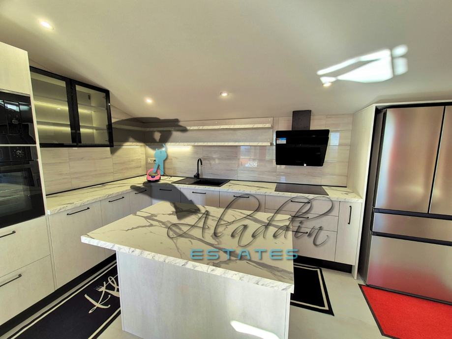 Both apartments contain two large bedrooms, a spacious living room, dining room and kitchen, two bathrooms and a central hallway. On the ground floor there is also a technical room combined with a guest toilet, and a beautiful terrace turned into a real winter garden for relaxation and enjoyment. On the first floor there is also a luxurious terrace with a picturesque view of the coastal area.