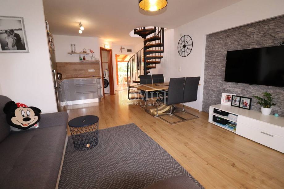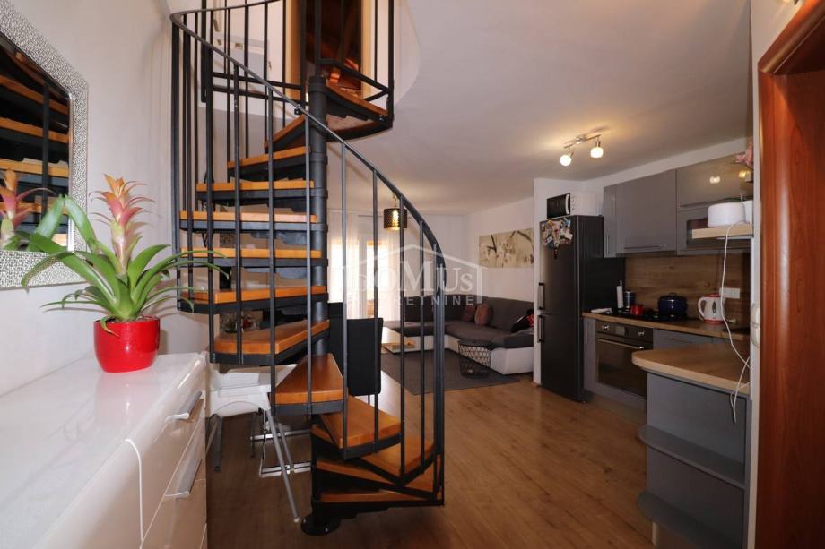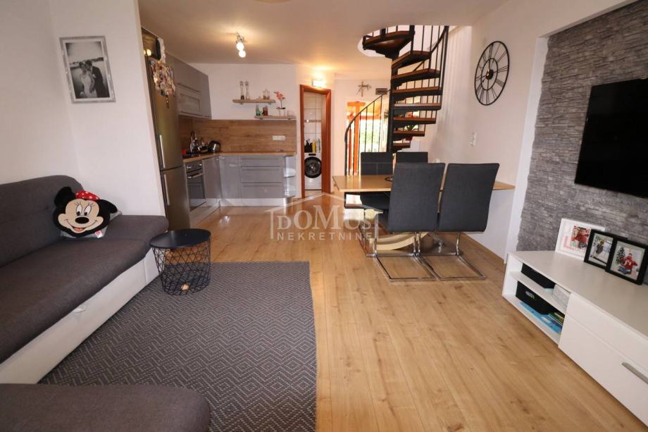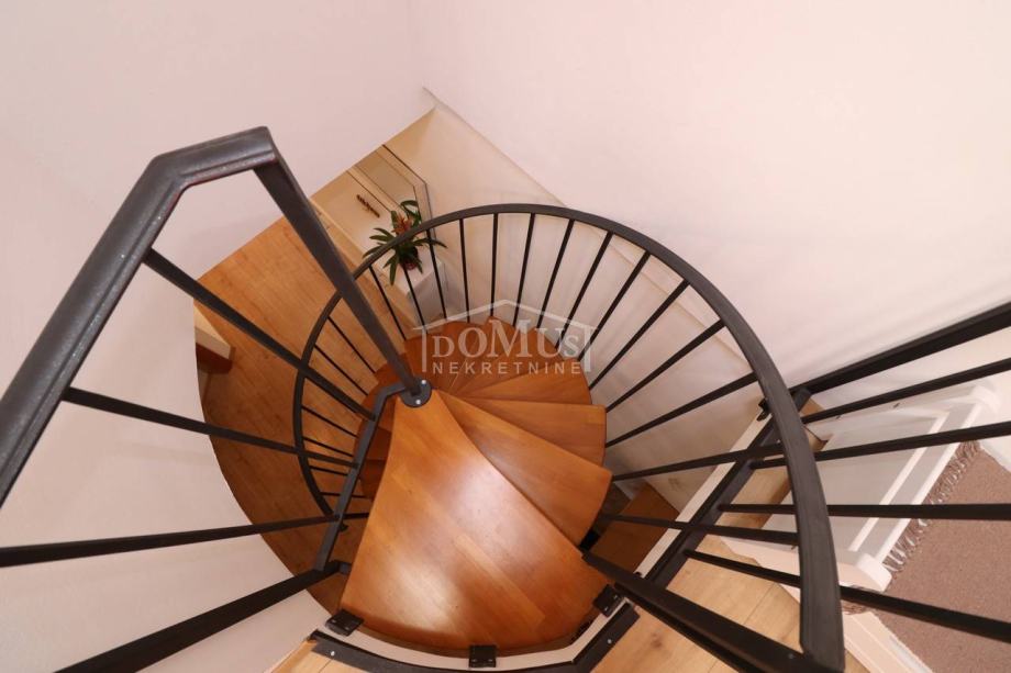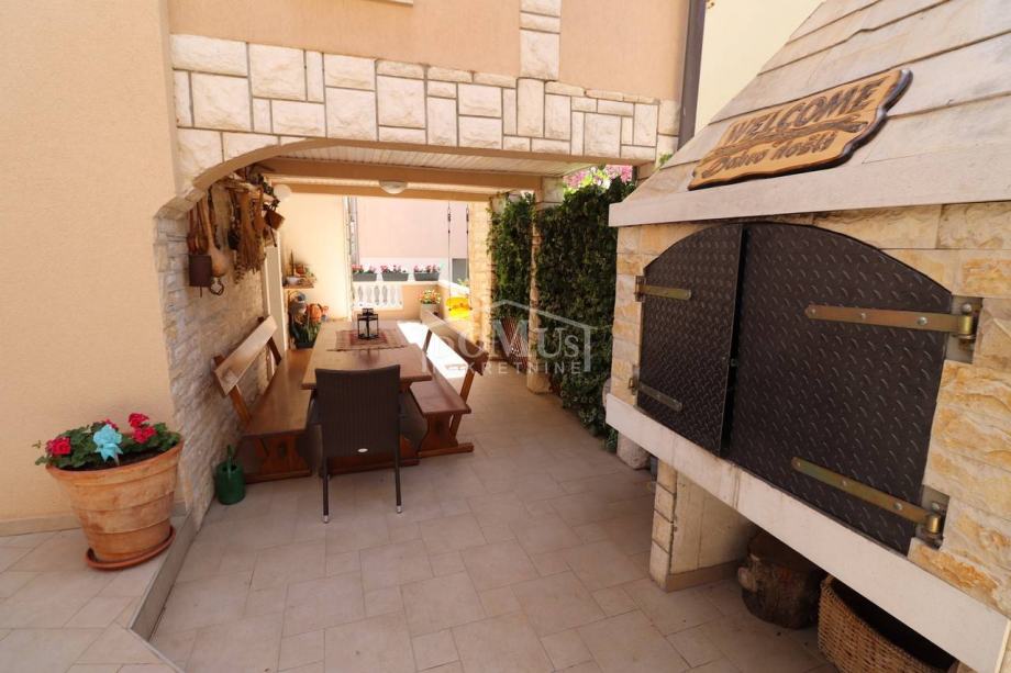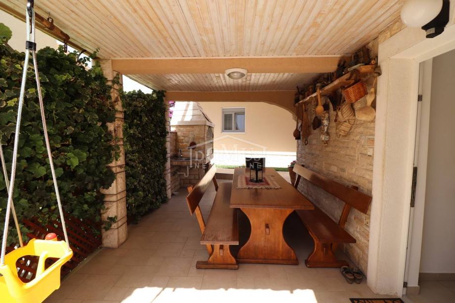 Dvije kompletno uređene apartmanske kuće na mirnoj lokaciji. Kuća 1 ima tri etaže sa ukupno 210,09m2 stambene površine na parceli površine 273m2. Sastoji se od garaže i dvosobnog apartmana u prizemlju, vanjsko stubište vodi na kat gdje se nalaze 2 dvosobna dvoetažna apartmana. Kuća 2 ima tri etaže sa ukupno 227,25m2 stambene površine na parceli 147m2. Sastoji se od dvosobnog apartmana i spremišta u prizemlju, 2 jednosobna apartmana na katu i komforan dvosobni apartman u potkrovlju sa pogledom na more. Apartmani su kompletno namješteni i namještaj je uključen u cijenu. Udaljenost od mora i Plave plaže je 600 m, a od centra 500m.