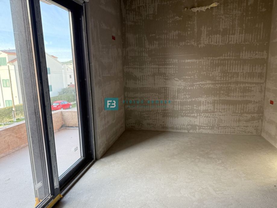 VODICE, novo, dvojna kuća, 650 m od plaže, vrt 120 m2, 3 spavaće sobe, (prodaja)