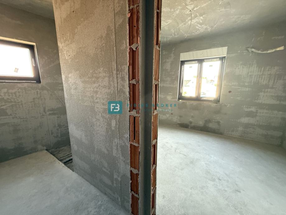 Krenula je izgradnja dvojnog objekta zanimljivog dizajna i funkcionalnog rasporeda. Nalazi se na atraktivnoj lokaciji, u izgrađenom dijelu grada koji je okružen obiteljskim kućama. Sastoji se od dvije etaže: prizemlje + kat. Velika prednost ove nekretnine je dvoetažni raspored, koji osigurava veću privatnost i omogućava komforniji način života. Uz to, svaka kuća ima vlastito dvorište, kao i po dva parkirna mjesta. Objekt se gradi kvalitetnim materijalima prema posljednjim standardima gradnje i biti će opremljen: stiropor fasada, protuprovalna vrata, PVC stolarija antracit boje, električni podizači s komarnicima, klima uređaj u dnevnom boravku te u svim spavaćim sobama, visokokvalitetne podne obloge, moderne kupaonske sanitarije, podno grijanje u kupaonicama i dnevnom boravku, konzolne stepenice obložene drvenom oblogom, staklena ograda na terasama. Planirani završetak radova i useljenje - ljeto 2026.godine.