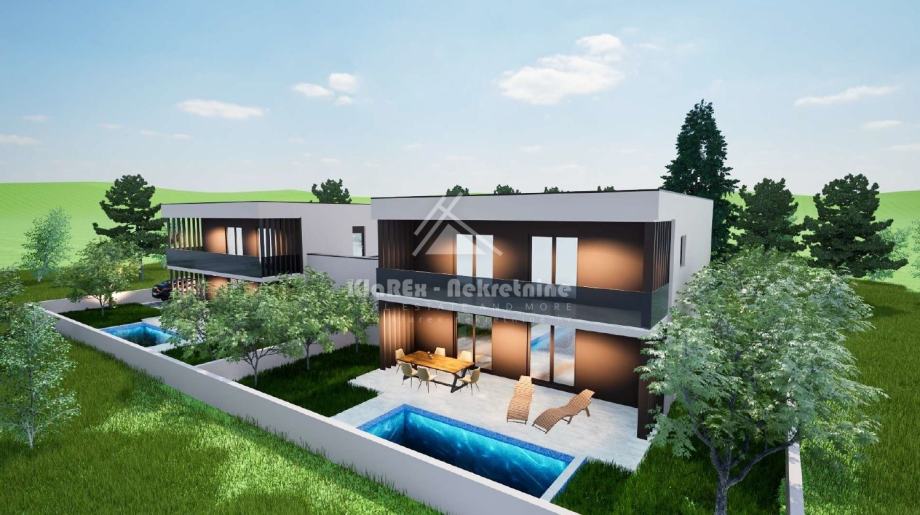 U Vodicama se stavljaju u prodaju dvije dvojne kuće s garažom i bazenom. Riječ je o novogradnji, udaljenoj oko 850 metara od mora, odnosno centra grada. Zgrada je konstruktivno završena i sada slijede radovi unutarnjeg i vanjskog uređenja kuće. Za ovaj dvojni objekt je izdana pravomoćna građevinska dozvola, a završetak projekta i useljenje se očekuju do proljeća 2026. U gradnji i uređenju će se koristiti materijali i oprema visoke kvalitete, a od svega vrijedi izdvojiti: podna grijanja u kuhinji i dnevnom boravku, električni podizači roleta, klima uređaji u dnevnom boravku i svim sobama itd. Pozicija nekretnine omogućuje pristup svim relevantnim sadržajima. Dinamika plaćanja u dogovoru s investitorom. U ponudi je: