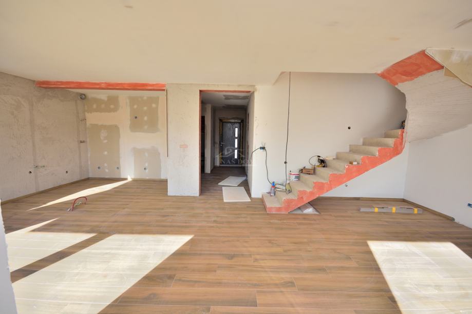 Kuća je pažljivo projektirana, s odličnim rasporedom prostorija s puno prirodnog svjetla a nalazi se na mirnoj lokaciji u okruženju modernih obiteljskih kuća i vila, 550 m od plaže a 1000 m od centra mjesta, idealna je za miran obiteljski život ali i kao investicija.