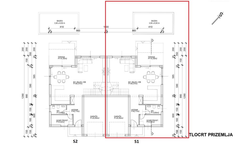 Vodice - dvojna kuća S1 s bazenom i krovnom terasom (prodaja)