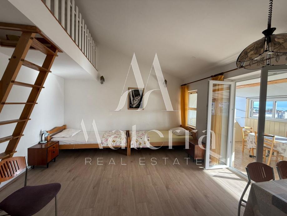 Stan se sastoji od dvije spavaće sobe, pri čemu svaka ima vlastitu kupaonicu i galeriju s krevetom. Dnevni boravak i sve sobe su klimatizirani, a kuhinja je funkcionalno uređena. Dodatnu vrijednost pruža zatvorena terasa, idealna za opuštanje i uživanje u miru doma. Južna orijentacija stana osigurava obilje dnevnog svjetla tijekom cijelog dana, a otvoreni pogled na more dodatno ističe atraktivnost nekretnine.