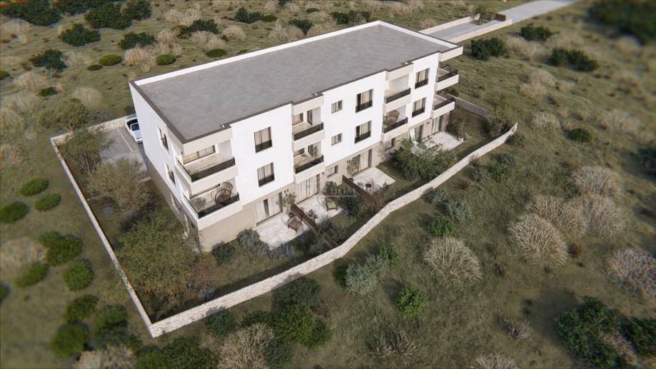 Na prodaju moderna stambena zgrada u izgradnji s ukupno 12 stanova, smještena na mirnoj lokaciji u Vodicama, 1100 m od plaže i 1600 m od centra grada.