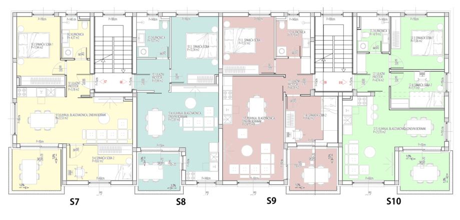 STAN S10 ima 60,76m2 neto korisne površine s uračunatim koeficijentima, te se sastoji od: ulaz, 2 spavaće soba, kupaonica, kuhinja i blagovaonica, dnevni boravak, terasa, te 1 parkirno mjesto. Cijena iznosi 200.000 € (Kupac je oslobođen plaćanja 3% poreza na promet nekretninama).