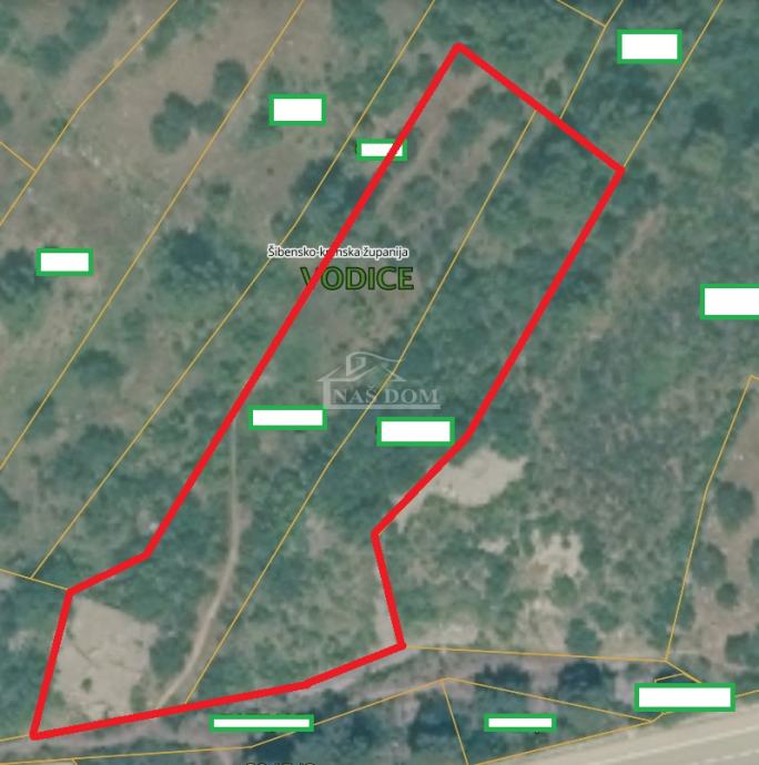 Na prodaju građevinsko zemljište ukupne površine 3.772 m2 (dvije spojene parcele od 1690 m2 i 2082 m2), smješteno na atraktivnoj lokaciji u Vodicama.