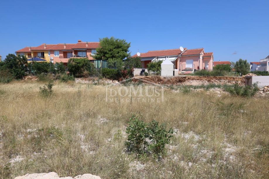 Građevinsko zemljište površine 715m2, koje se nalazi u M zoni – oznake 1.4. Zemljište je ravno i nije očišćeno, pravokutnog oblika. Dimenzije zemljišta su cca 33mx21m, javna infrastruktura se nalazi 15m udaljeno od zemljišta, do parcele je predviđen prilazni put širine od 5m, isti još nije fizički uređen, udaljenost od asfaltne ceste iznosi 20m. Moguća izgradnja obiteljske građevine. Zemljište je udaljeno od centra 1600m, a od uređene plaže 2.050m.