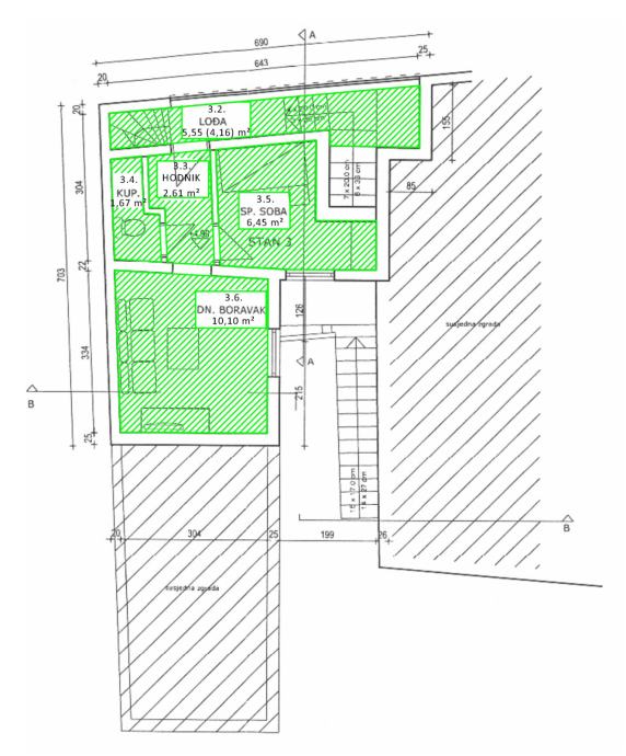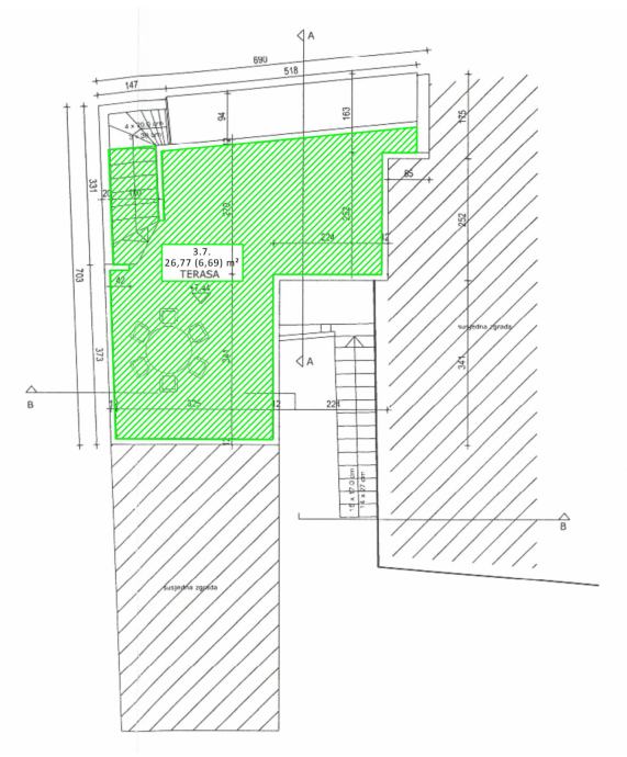 Krovna terasa ima pripremljene instalacije za struju, toplu i hladnu vodu, gdje postoji mogućnost dogradnje još jednog manjeg stana od 20 m2 do 3.5 m visine, odnosno ljetne kuhinje.