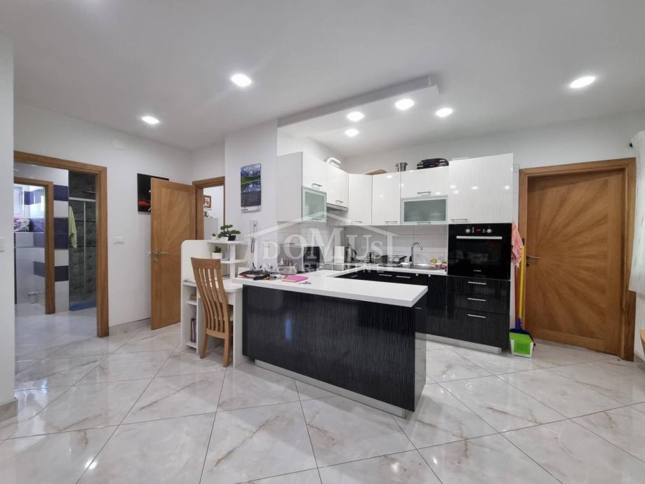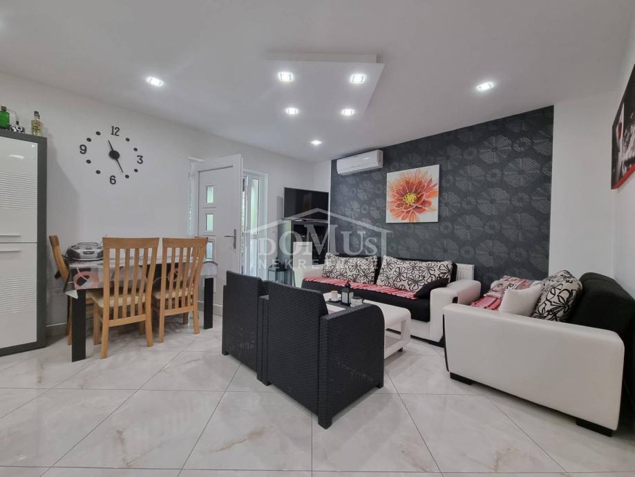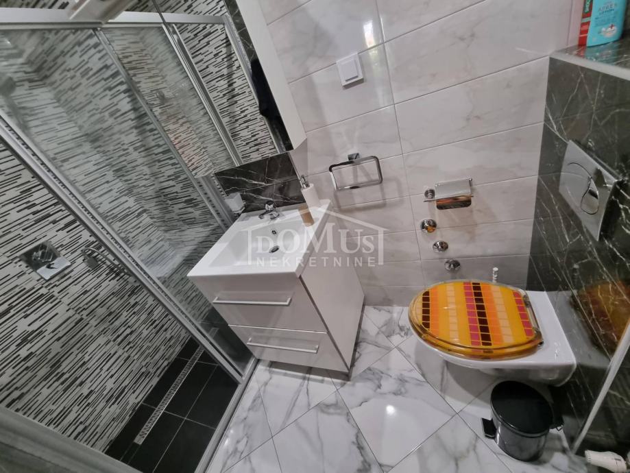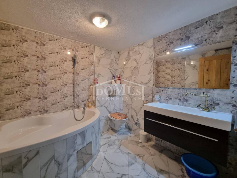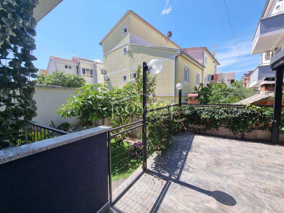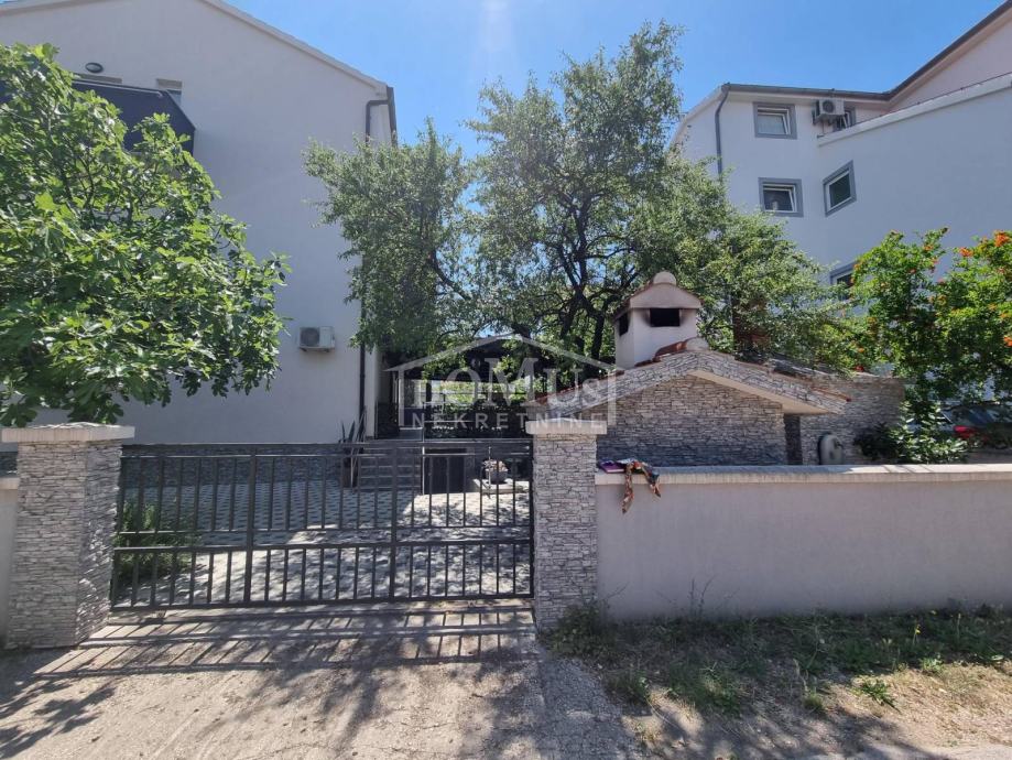 Atraktivna lokacija, udaljenost 230m od plaže Lovetovo. Trosoban komforan apartman u prizemlju, južna strana, ukupna površina 149,43m2, sastoji se od kuhinje s blagovaonom i dnevnim boravkom, 3 kupaonice, WC, 3 spavaće sobe, veliko spremište, terasa 75,38 m2, vrt 101,41 m2 sa grilom i ostavom, apartman je u potpunosti namješten, isti je uključen u cijenu nekretnine, apartmanu pripada jedno parkirno mjesto. Apartman je udaljen 1500m od centra grada.
