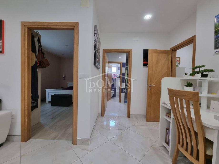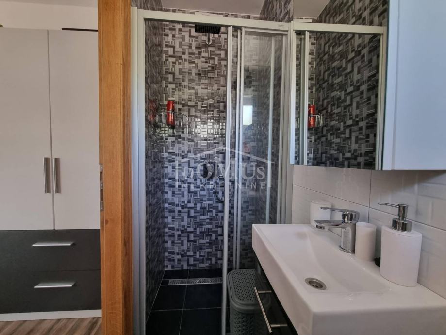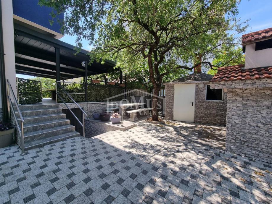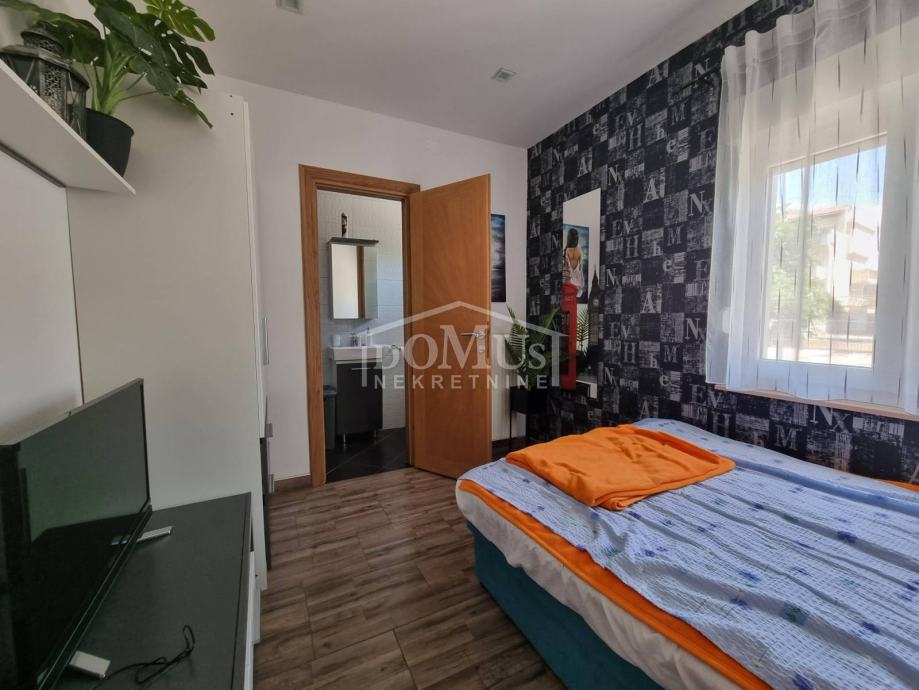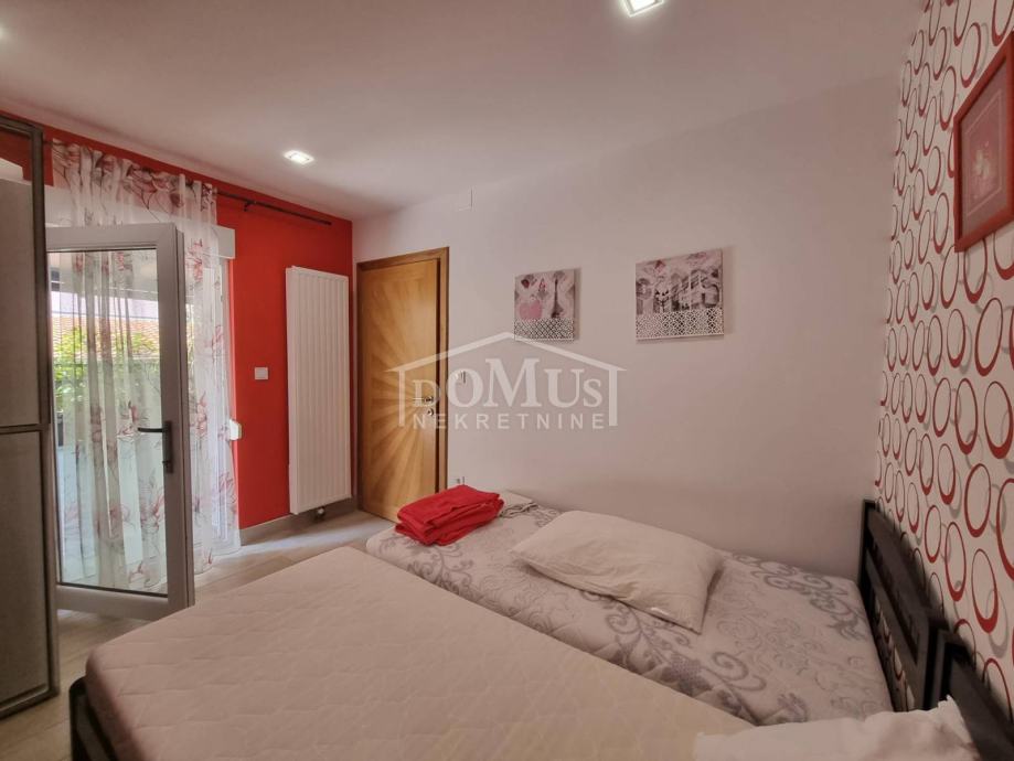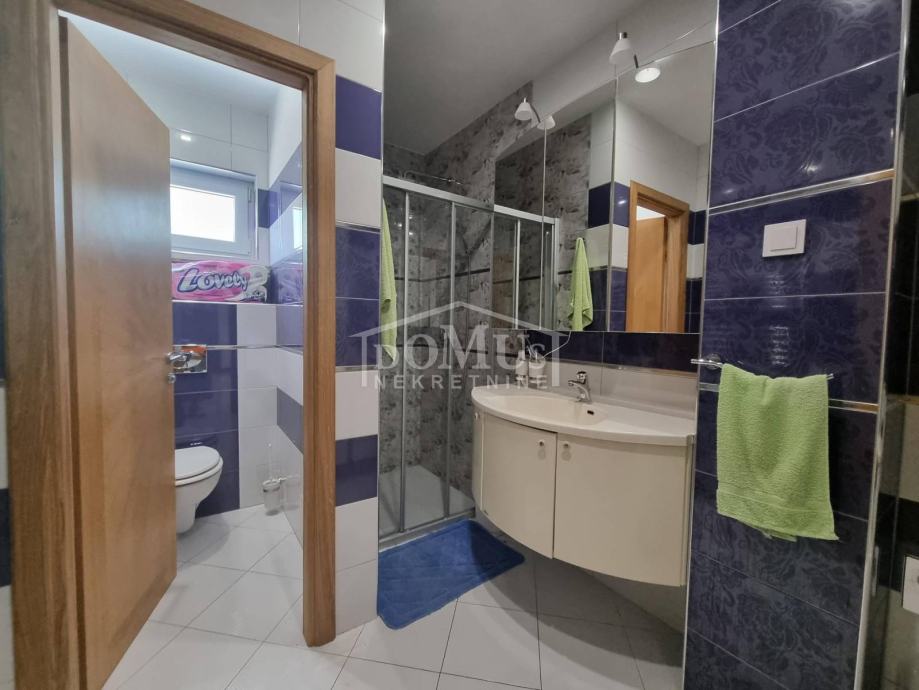 Atraktivna lokacija, udaljenost 230m od plaže Lovetovo. Trosoban komforan apartman u prizemlju, južna strana, ukupna površina 149,43m2, sastoji se od kuhinje s blagovaonom i dnevnim boravkom, 3 kupaonice, WC, 3 spavaće sobe, veliko spremište, terasa 75,38 m2, vrt 101,41 m2 sa grilom i ostavom, apartman je u potpunosti namješten, isti je uključen u cijenu nekretnine, apartmanu pripada jedno parkirno mjesto. Apartman je udaljen 1500m od centra grada.