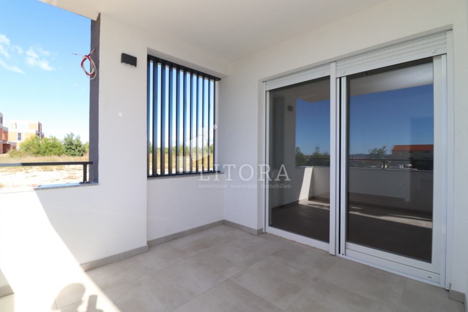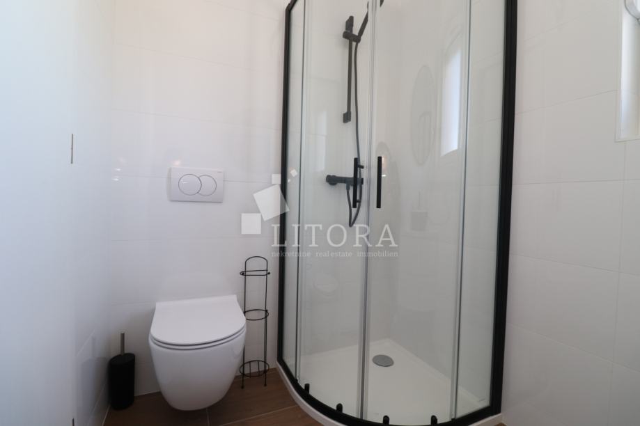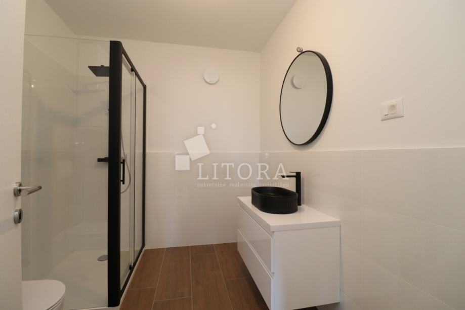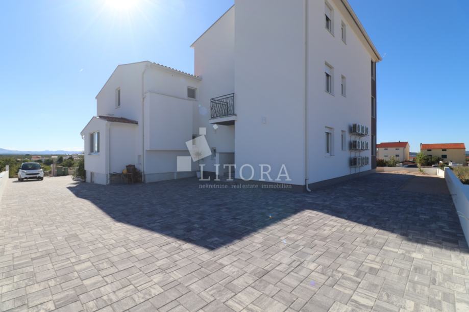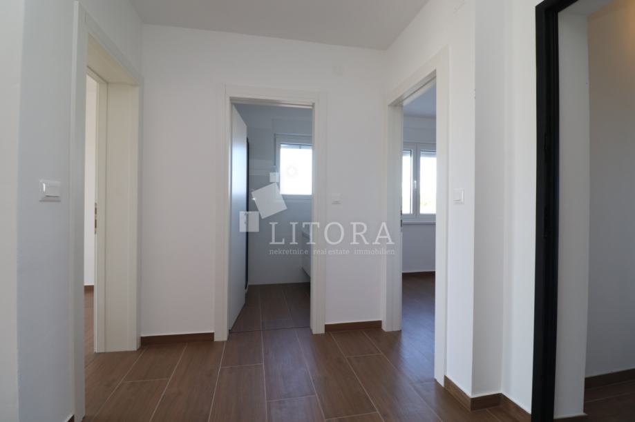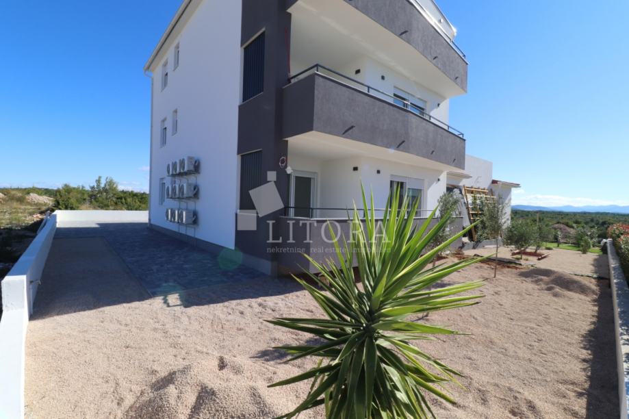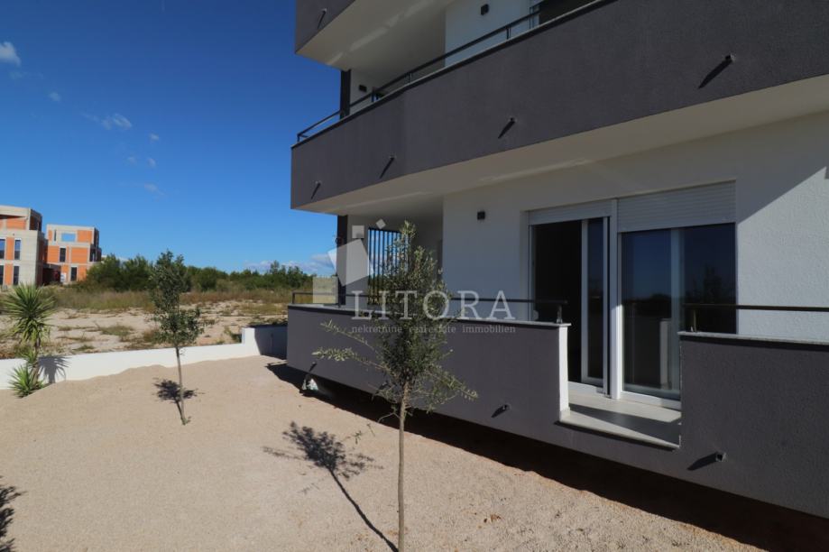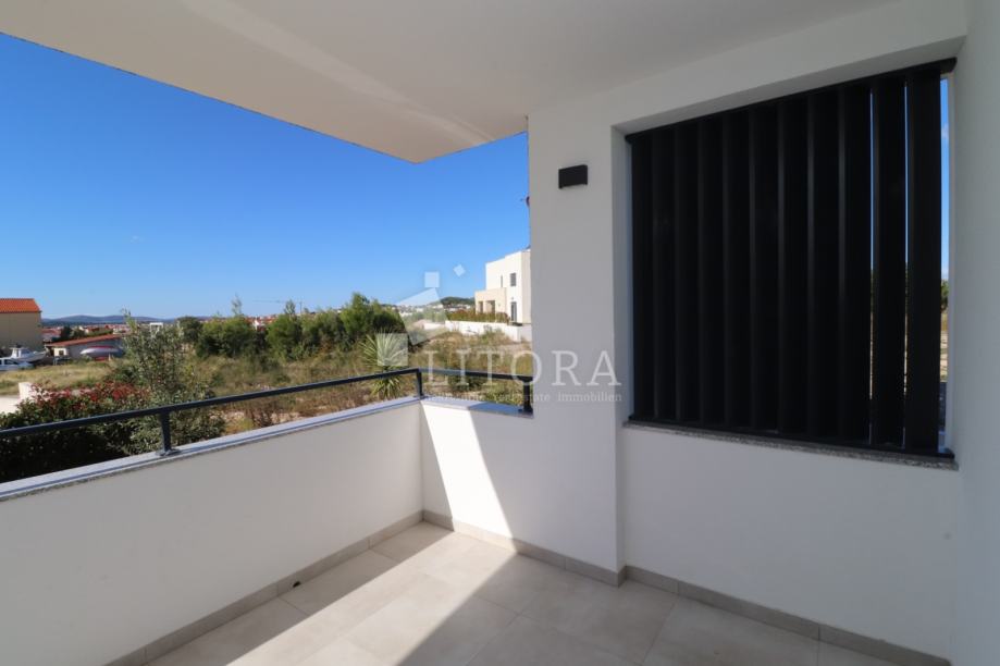 Vodice – novogradnja, apartman s dvorištem i pogledom na more. Novouređeni apartman ukupne korisne površine 77,61 m2 smješten u sklopu manje stambene zgrade u Vodicama na mirnoj lokaciji. Orijentiran na južnu stranu, s pogledom na more. Sastoji se od predsoblja, dvije kupaonice, dvije spavaće sobe, dnevnog boravka s blagovaonicom i kuhinjom, s izlazom na natkrivenu terasu i pripadajuće dvorište površine 54 m². U završnoj fazi, opremljen protuprovalnim vratima, klima uređajima u svakoj prostoriji, komarnicima, podno grijanje u kupaonicama, dimnjak u dnevnom boravku. Pripada mu jedno vanjsko parkirno mjesto. Udaljen 1.000 m od plaže i 1.150 m od centra mjesta.