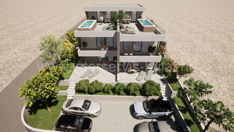 Na mirnoj lokaciji u Vodicama, oko 1,5km od mora i centra, prodaje se predivan dvoetažni stan u novogradnji. Nalazi se na 1. i 2. katu zgrade moderne arhitekture koja je u završnoj fazi izgradnje.