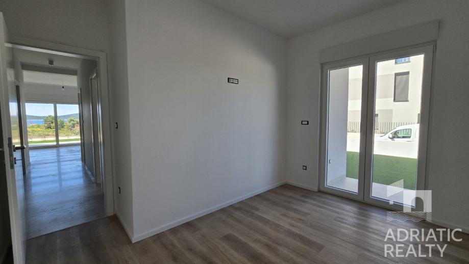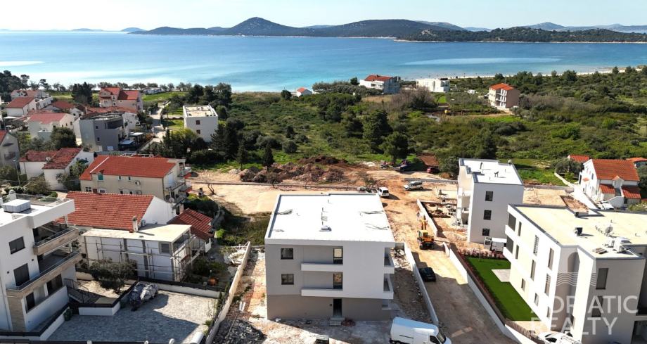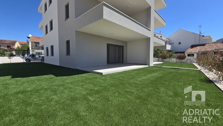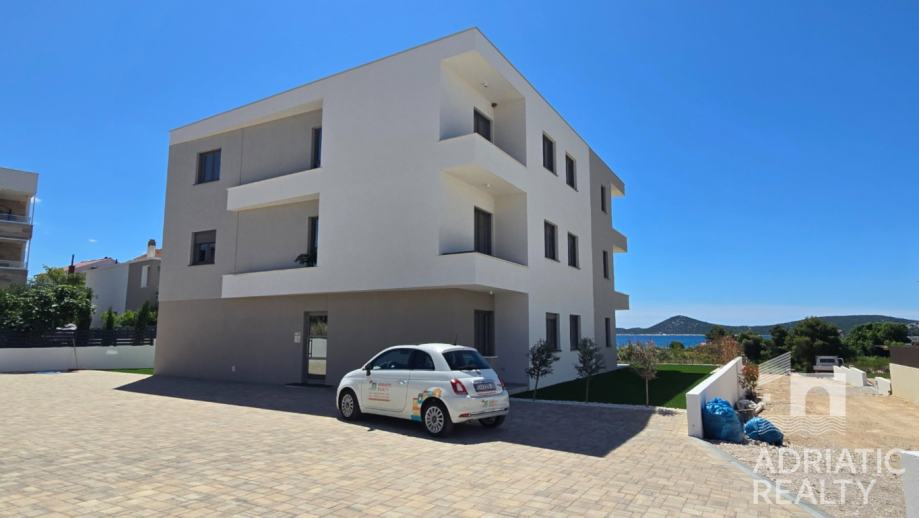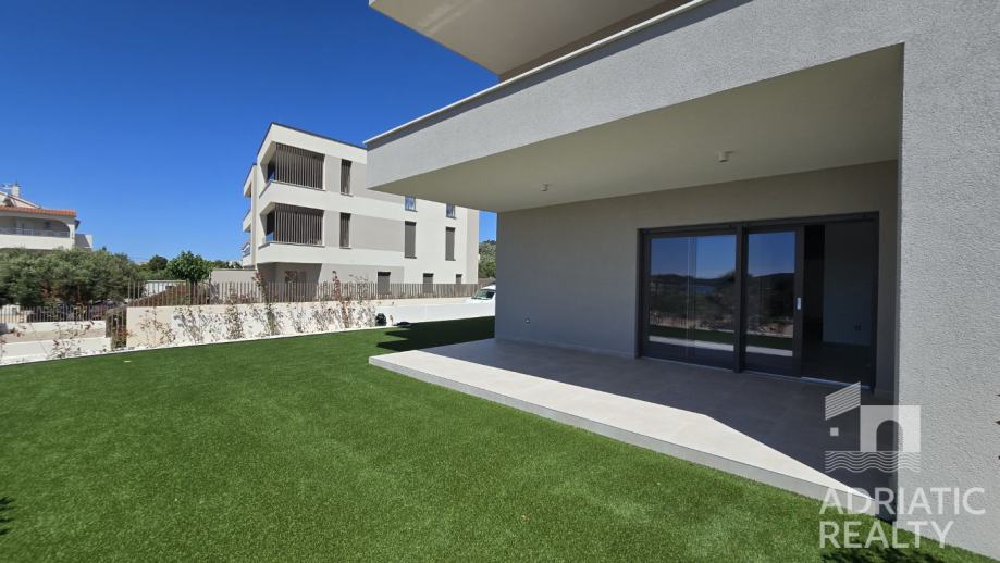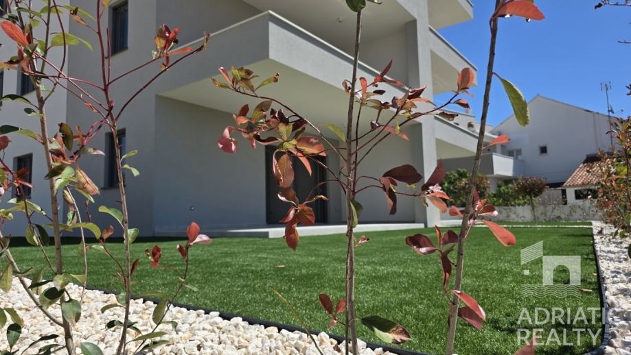 Prodaje se moderan trosobni apartman u prizemlju novogradnje, udaljen manje od pet minuta hoda od prekrasne plaže i šetnice Vodice-Tribunj. Smješten u suvremenoj stambenoj zgradi, ovaj apartman nudi visok standard gradnje i udobnosti te rijetku prednost – vlastiti prostrani vrt površine 134 m2, idealan za opuštanje i uživanje na otvorenom.