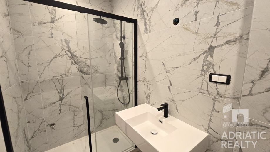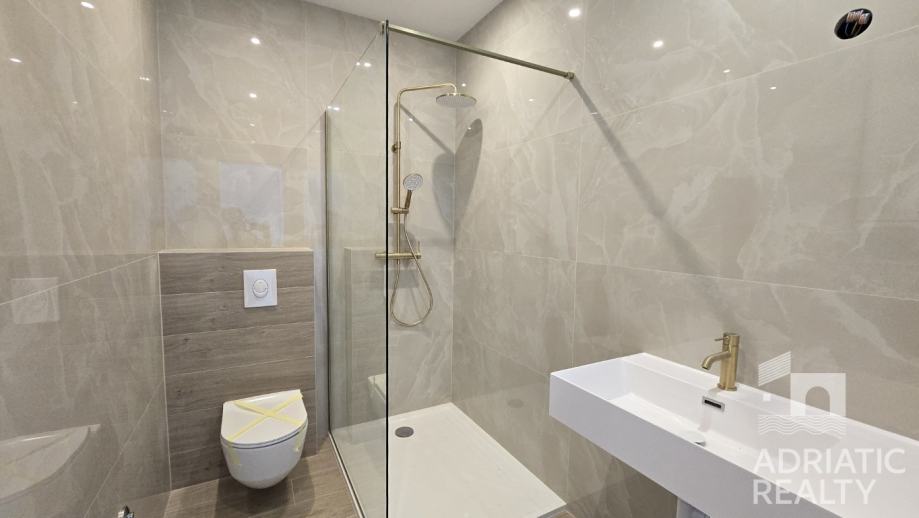 Pri gradnji su korišteni visokokvalitetni materijali i oprema, uključujući podno grijanje u dnevnom prostoru i kupaonicama, dok su klima uređaji postavljeni u svim spavaćim sobama i dnevnom boravku. Elegantne podne obloge i moderna stolarija s električnim podizačima roleta osiguravaju dodatni komfor. Na terasi je ostavljen priključak za jacuzzi, nudeći mogućnost dodatnog luksuza. Iz apartmana se pruža djelomičan pogled na more, stvarajući ugodnu mediteransku atmosferu. Završetak radova planiran je za proljeće 2025. godine.
