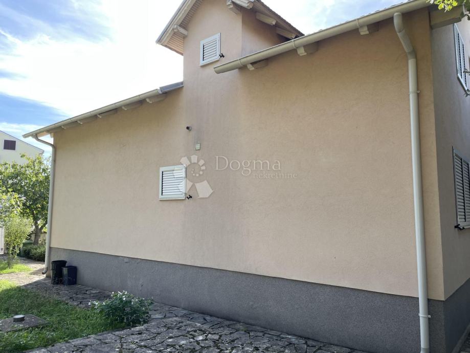 Kuća se proteže kroz podrum, prizemlje i potkrovlje. U podrumu se nalazi garaža te dodatne pomoćne prostorije koje mogu služiti kao spremišta ili tehnički prostor. Prizemlje čini prostran i funkcionalan stan s dvije spavaće sobe, ugodnim dnevnim boravkom povezanom s kuhinjom i blagovaonicom, kupaonicom, dodatnim WC-om te velikom natkrivenom terasom idealnom za boravak na otvorenom. Iz prizemlja se izlazi u lijepo uređeno dvorište.