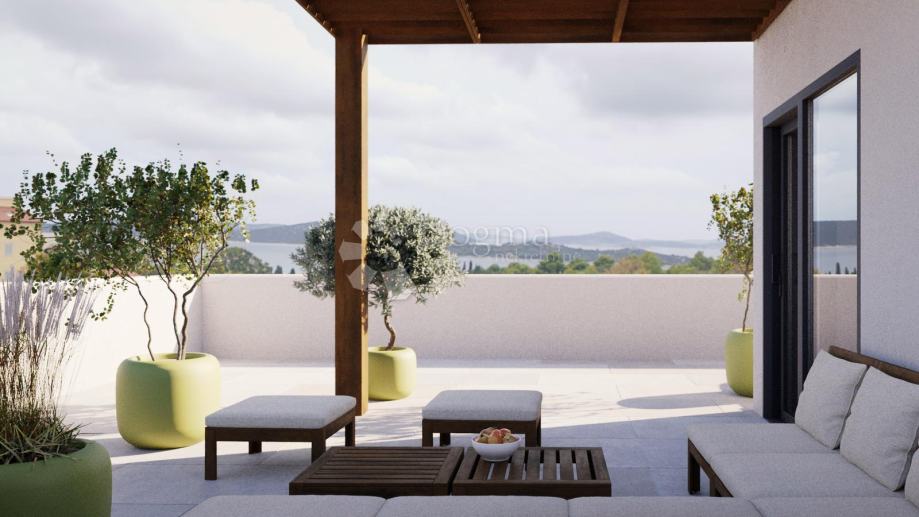 Prodaje se luksuzna kuća s bazenom u sklopu dvojnog objekta u Vodicama, na prekrasnoj lokaciji u sjevernom dijelu Vodica, s otvorenim pogledom na more.
