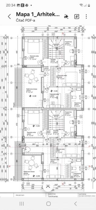 Na 1. katu se nalaze 3 spavaće sobe i 2 kupaone te velika, natkrivena terasa s pogledom na more.