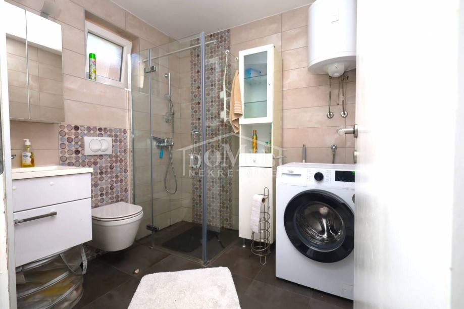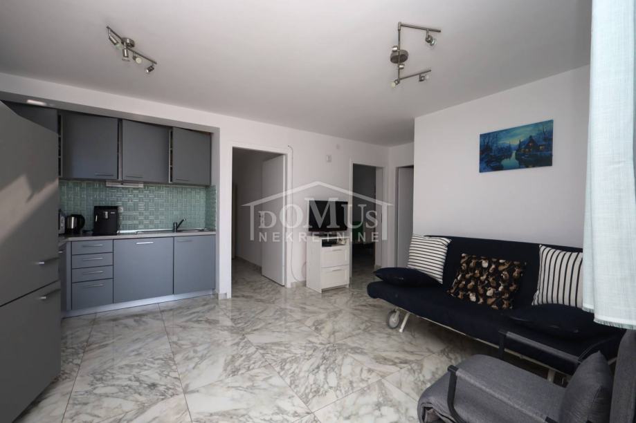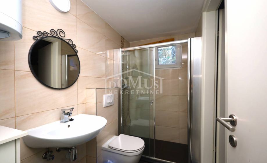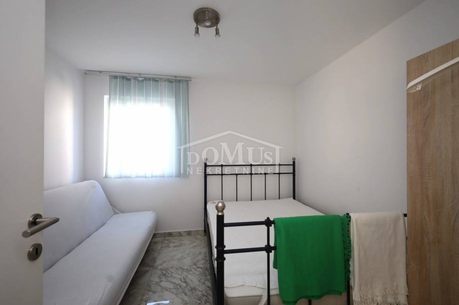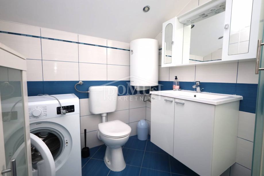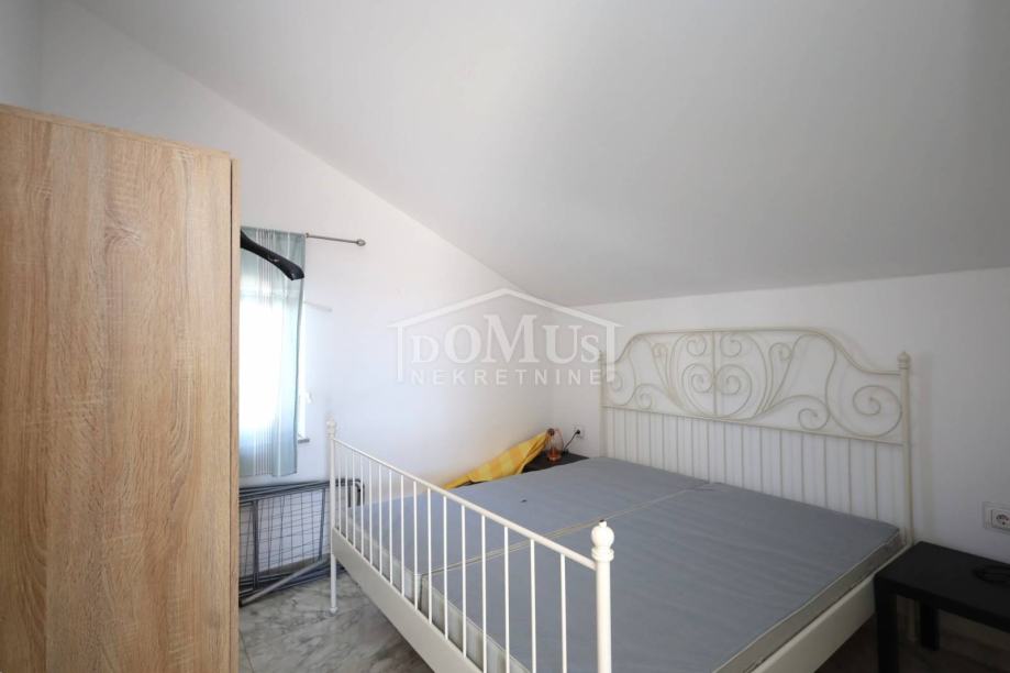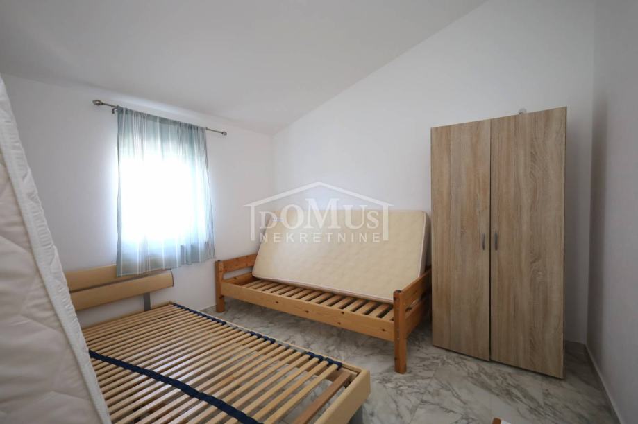 Samostojeća katnica sa ukupno 130 m2 sa korisne površine sa pomoćnim objektom na parceli od 502m2 u mirnom okruženju. Prizemlje kuće se sastoji od kuhinje sa blagovaonom, dvije spavaće sobe, toalet, kupaonica i natkrivena terasa. Vanjsko stepenište vodi na 1.kat gdje se nalazi stan sa dvije spavaće sobe, kupaonicom, dnevni boravak i kuhinja, te natkrivena terasa. Uz kuću se nalazi pomoćni objekt - dvorišna kućica koja je preuređena u jednosoban apartman, te vanjski roštilj. Kuća ima veliko dvorište koje može služiti kao parkirni prostor, mogućnost parkiranja do 6 auta. Kuća je kompletno uređena i useljiva, dvorište je popločano ispred kuće. Parcela je u potpunosti ograđena. Kuća je udaljena 1.600 m od uređene plaže, a 1.400 m od centra grada.