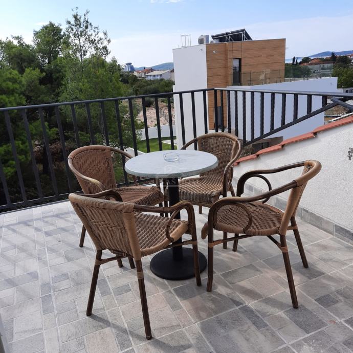 Dnevni boravak, kuhinja s blagovaonicom, spavaća soba, kupaonica i nenatkrivena terasa.