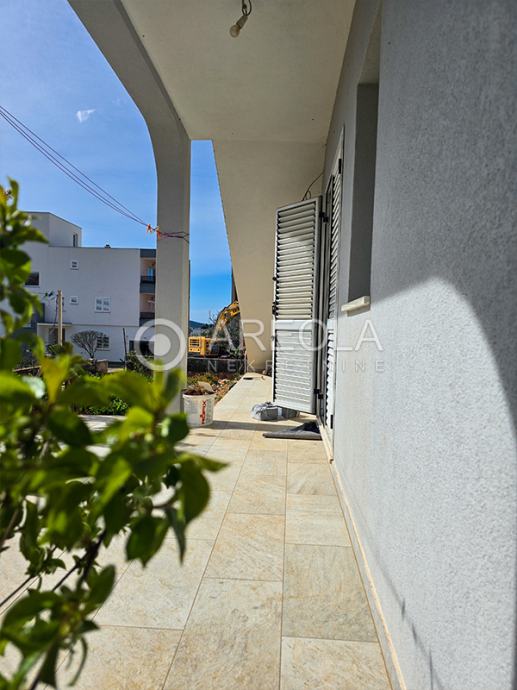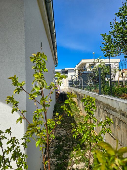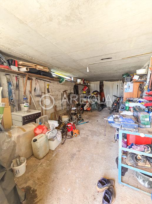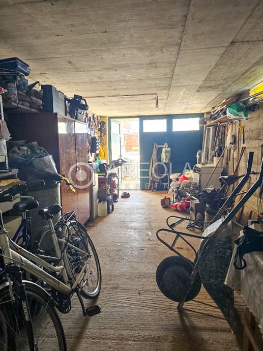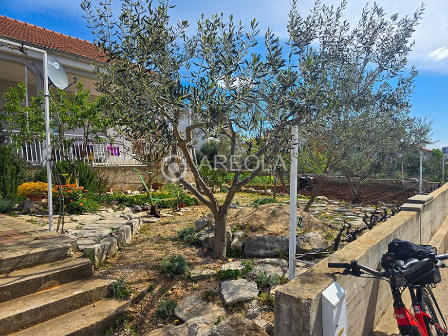 Okućnica je ograđena i zasađena voćkama, cvijećem i biljem, a dio prostora koristi se kao vrt s poljoprivrednim kulturama. Uz samu kuću smješten je i dodatni, zasebni objekt koji služi kao tradicionalni dalmatinski komin površine cca 7 m² – za druženja i pripremu roštilja. U podrumskom dijelu kuće nalazi se garaža (cca 25 m²), koja pruža dodatnu praktičnost i siguran prostor za automobil i odlaganje stvari.
