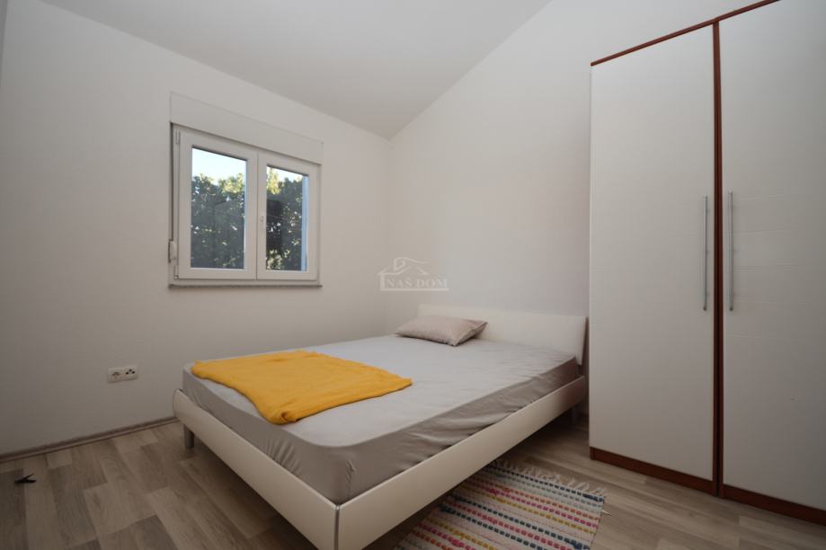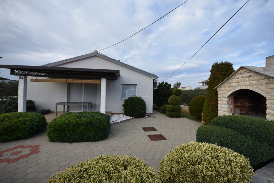 Vodice- mirna lokacija prodaje se kuća prizemnica površine 110 m2 sagrađene na zemljištu površine od 336 m2. Kuća se sastoji od hodnika, manje kupaonice , velika kupaonica, ostave, kuhinje sa blagovaonom i dnevni boravak, hodnik 3 spavaće sobe, terase, te uređen vrt.