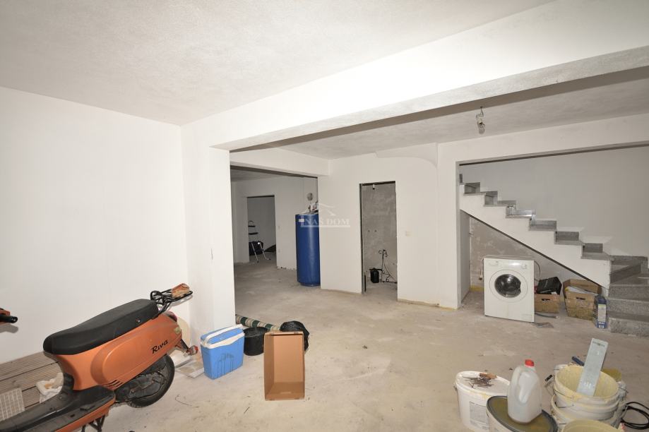 Interijer kuće je opremljen kuhinjom s aparatima, perilicom posuđa, perilicom rublja, kadom, Tv i ostali namještaj što čini ovu nekretninu spremnom za useljenje bez dodatnih ulaganja u opremu. Prostrani podrum od 100 m2 nudi dodatne mogućnosti za korištenje, bilo kao skladišni prostor ili mjesto za hobije.