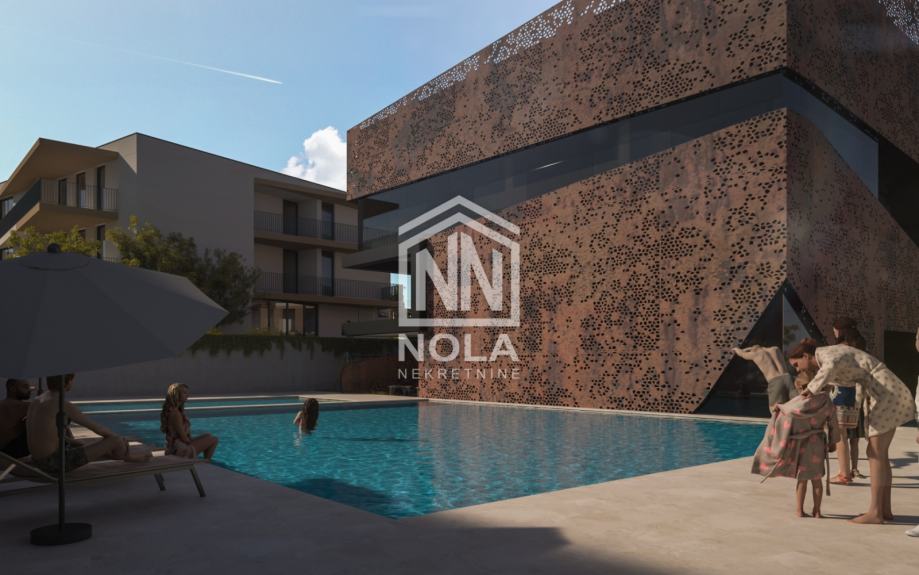 Središnji bazenski prostor uz centralnu zgradu oblikovan je kao tiha, vizualno profinjena oaza, uz dječji dio i sunčalište savršeno za popodnevni odmor. Tu je i moderno opremljen restoran koji dodatno podižu kvalitetu života unutar kompleksa.